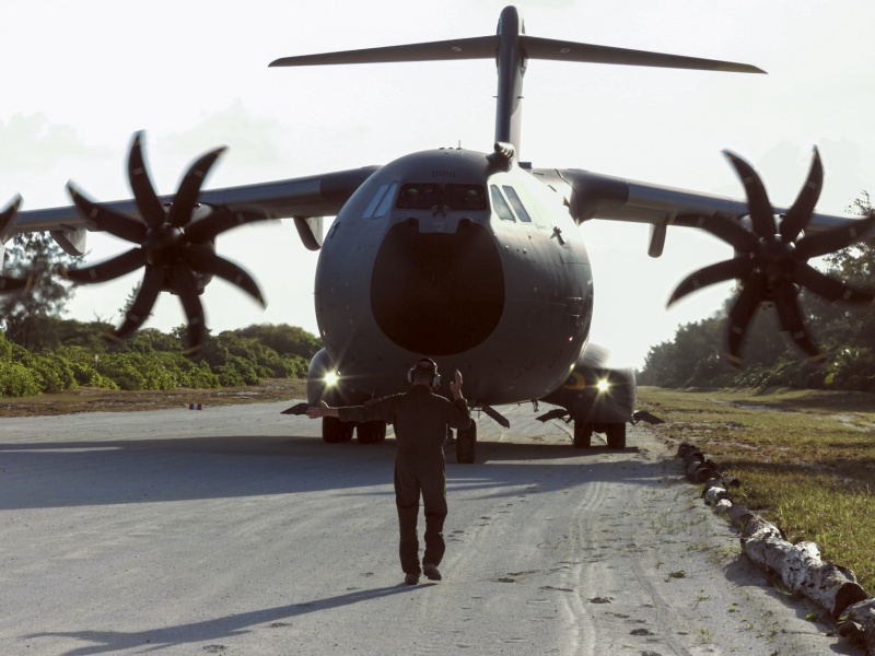 Après trois atterrissages et trois décollages réussis, l’A400M a ainsi pu confirmer l’ouverture des trois îles aux opérations de transports stratégique et tactique au profit des FAZSOI, avec une charge maximale pouvant atteindre 32 tonnes.
