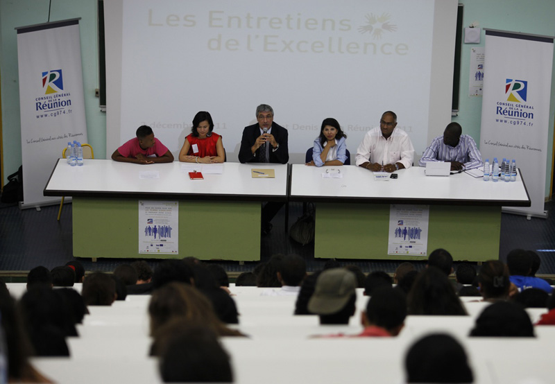 L'université de La Réunion a accueilli, sur le campus du Moufia à Saint-Denis, les "Entretiens de l'Excellence" ce samedi 3 décembre 2011. Organisée par le Club XXIème Siècle, en partenariat avec le conseil général, la manifestation, qui s'installe pour la première fois à La Réunion, a pour objectif d'informer collégiens et lycéens sur les filières d'excellence de l'enseignement supérieur et de les faire rencontrer des grands chefs d'entreprise mais aussi des responsables politiques nationaux et locaux.