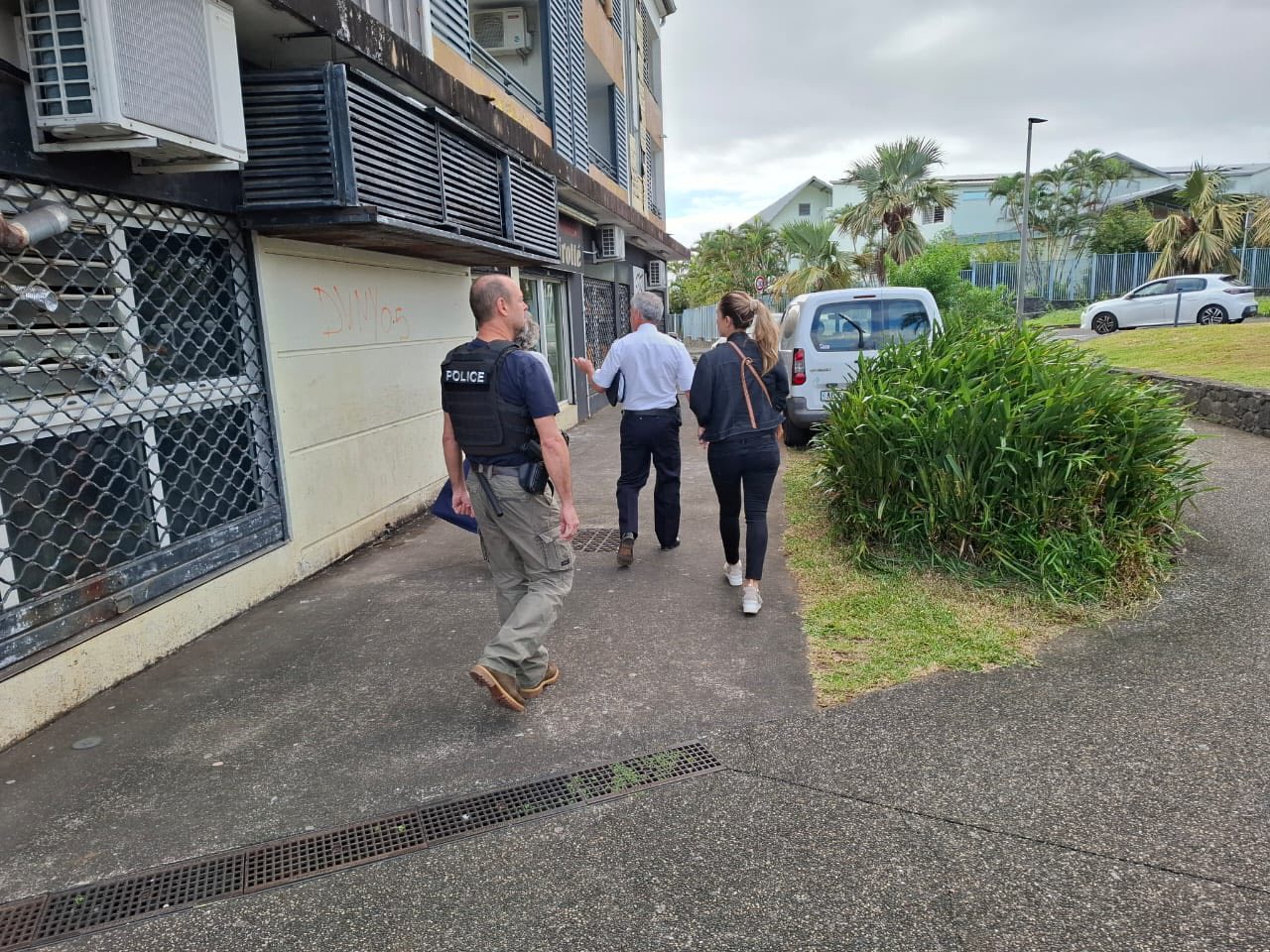 Ce mercredi 18 juin 2025, à la demande de la justice, la procureure de la République de Saint-Denis, accompagnée de la police de La Réunion, s'est rendue dans le quartier Fayard à Saint-André. Une visite dans le cadre du groupe local de traitement de la délinquance (GLTD), contre les phénomènes de bandes (Photo : Police de La Réunion)