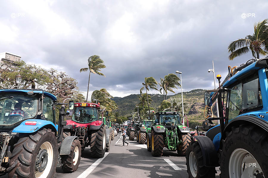 • 13h01 - Une déviation a été mise en placee par les forces de l'ordre pour contourner le Barachois. Les tracteurs se garent devant et autour de la préfecture