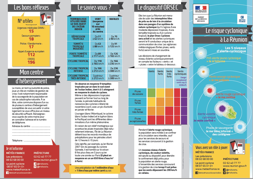 Dès que La Réunion est menacée de subir des intempéries liées à la circulation d'un système de nature cyclonique, (dépression tropicale, tempête tropicale ou cyclone tropical), le plan Orsec Cyclones est activé. Les décisions de changement de niveau d'alerte cyclonique prennent en compte les facteurs "vents" et "pluies". En cas de cyclone, tous les services de l'Etat sont mobilisés, tout comme la Croix-Rouge à travers la Piroi. "Nous venons en assistance aux personnes sinistrées, en apportant des moyens humains et matériels" souligne Eric Sam-Vah, chef de délégation adjoint. Regardez