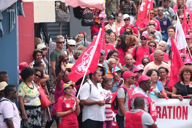 11h42 - Près de 2000 manifestants composent le cortège. Le Barachois est fermé à la circulation dans les deux sens entre le carrefour avec la rue Labourdonnais et l'intersection de la rue Lucien Gasparin, indique la Crgt. Une déviation est mise en place par la voirie communale.