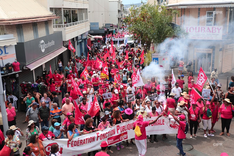 Grève de la fonction publique - Plusieurs centaines de manifestants dans les rues de Saint-Denis pic.twitter.com/8WutjYHOts