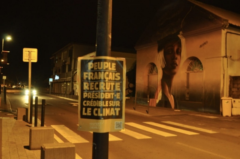 Mercredi 2 mars grand matin, les Réunionnaises et les Réunionnais ont pu découvrir des affiches colorées placardées dans les rues et routes, rappelant la nécessité que le ou la futur·e président·e soit "crédible pour le climat".