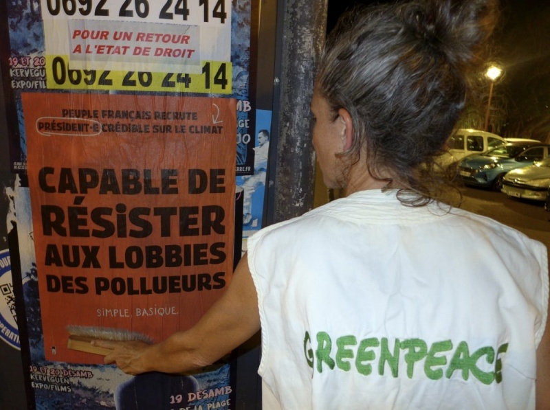Cette campagne d’affichage a été menée par les militants et militantes du groupe local de Greenpeace de La Réunion, dans le cadre d’une mobilisation dans toute la France. L’affichage a été effectué dans la nuit de mardi dans plusieurs villes (Saint Denis, Saint Paul, Saint Leu, Saint Pierre, Le Tampon, Petite Ile, Saint Joseph, Sainte André et Sainte Suzanne) afin de sensibiliser la population à l’enjeu climatique, encore trop absent des débats autour de l'élection présidentielle.