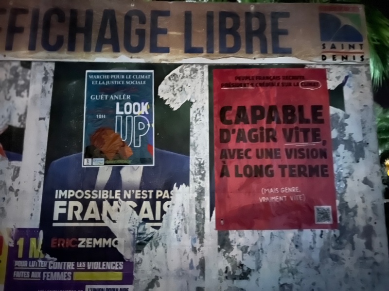 Plus sérieusement, ces affiches posent la question de savoir quel·les candidat·es s’emparent de cette thématique cruciale pour l’humanité, en proposant des mesures structurantes et