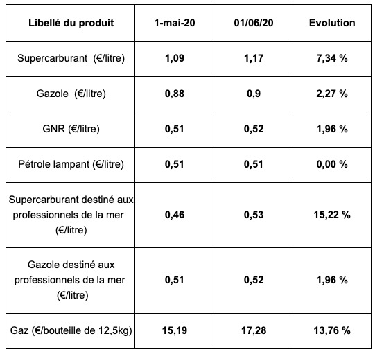 En consĂ©quence, les prix des produits pĂ©troliers et gaziers de La RĂ©union sâĂ©tablissent de la façon suivante au 1er juin 2020 :