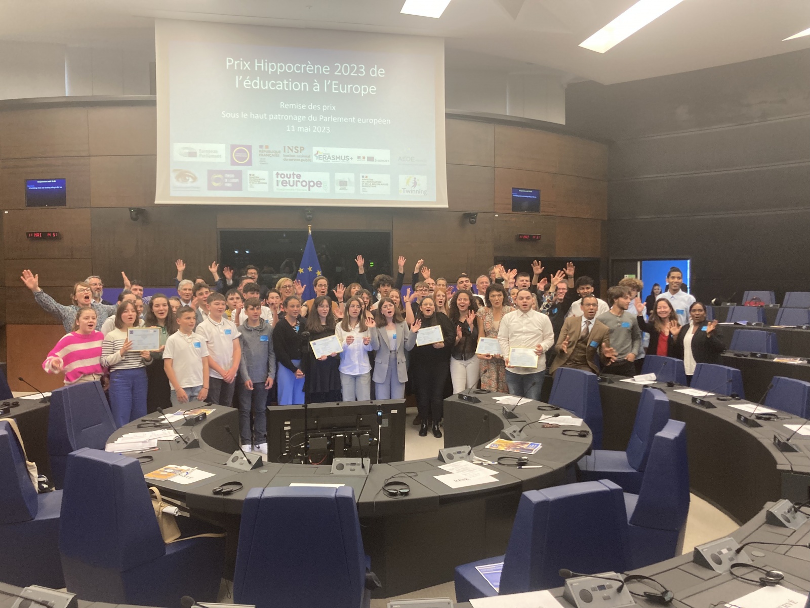 Lors d’une cérémonie organisée sous le haut patronage du Parlement européen et en partenariat avec l’INSP les professeurs lauréats ont reçu un diplôme récompensant leur projet de partenariat européen concrétisant leurs sentiments d’appartenance à l’Europe. À travers cette cérémonie, la Fondation Hippocrène récompense des initiatives qui permettent aux jeunes de vivre l’Europe d’aujourd’hui et construire celle de demain.