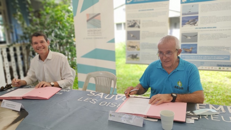 La Société d'études ornithologiques de La Réunion (SEOR) et l'Aéroport de Roland-Garros ont signé une convention pour acter leur partenariat en cas d'oiseau échoué dans la zone de l'aéroport. L'engagement pris concerne la prise en charge des oiseaux et la formation du personnel. L'aéroport s'engage en contrepartie à verser une subvention à la SEOR. Nous publions ci-dessous le communiqué de la SEOR et de l'aéroport Roland-Garros.