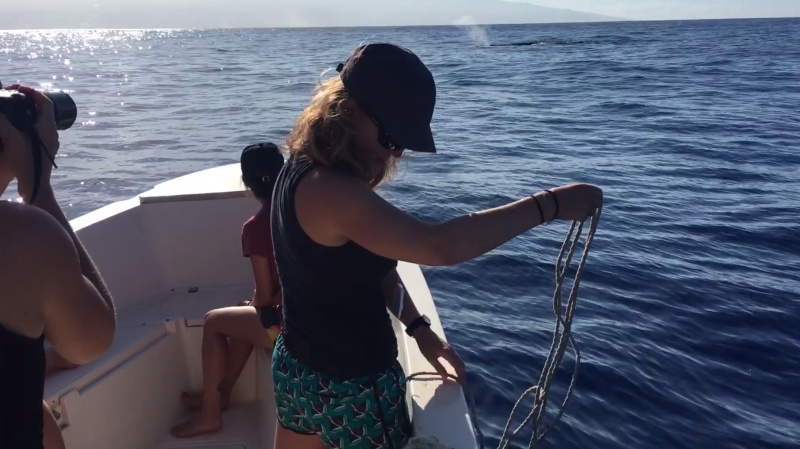 L'association Globice fait partager une belle découverte : l'écoute d'un cachalot, observé seul, au large de La Réunion, sur la côte ouest. C'est ensuite un groupe de quatre individus qui a pu être observé. Les membres de Globice ont pu écouter les cétacés afin d'enrichir le programme Déclic, qui a vocation à améliorer la connaissance de ces animaux, via l'étude de leurs sons. (Photo : capture d'écran vidéo Globice)