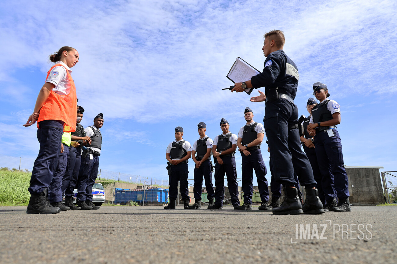 Ce lundi 25 mars 2024, la base aérienne 181 a accueilli 12 élèves en formation initiale de policier adjoint pour un atelier de simulation d'infractions. L'occasion pour les formateurs de revenir sur les techniques et réflexes à assimiler, pour que les interpellations en conditions réelles se passent sans encombres. (Photo : sly/www.imazpress.com)