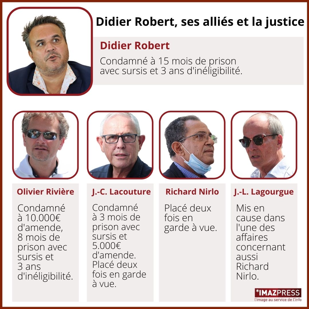 - Didier Robert, tête de liste, condamné à 15 mois de prison avec sursis et 3 ans d'inéligibilité