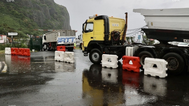 Nouvelle journée de blocage annoncée devant l'entrée du chantier de la nouvelle route du littoral (NRL) à Saint-Denis ce mardi 16 février 2021. Les membres du groupement réunionnais des transporteurs du sud (GRTS) n'ont toujours pas décoléré. Ils réclament une répartition "plus équitable" du marché de remblaiement d'une partie du chantier située à l'entrée nord de la NRL Lundi déjà ils avaient interdit l'accès aux autres transporteurs attributaires de ce marché. "Eux ont obtenu 55% des travaux et les autres entreprises doivent se contenter chacune de 10%" déplore Hubert Poinapin dirigeant du syndicat réunionnais des transporteurs et terrassiers (SRTT)