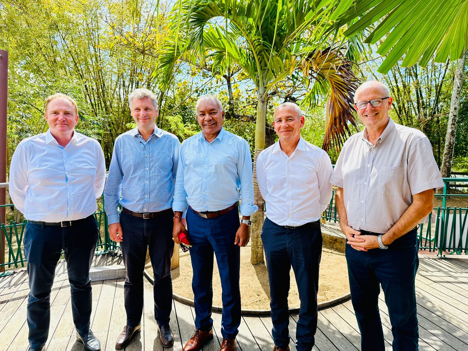 Le président du syndical du syndicat intercommunal de traitement des déchets du nord et de l'est de La Réunion (SYDNE), Daniel Alamelou et son 1er vice-président, Joé Bédier ont reçu, le 11 septembre 2024, le président du groupe Albioma, Frédéric Moyne, venu présenter son nouveau Directeur régional d’Albioma, Geoffroy Mercier, qui prend la suite de Pascal Langeron.