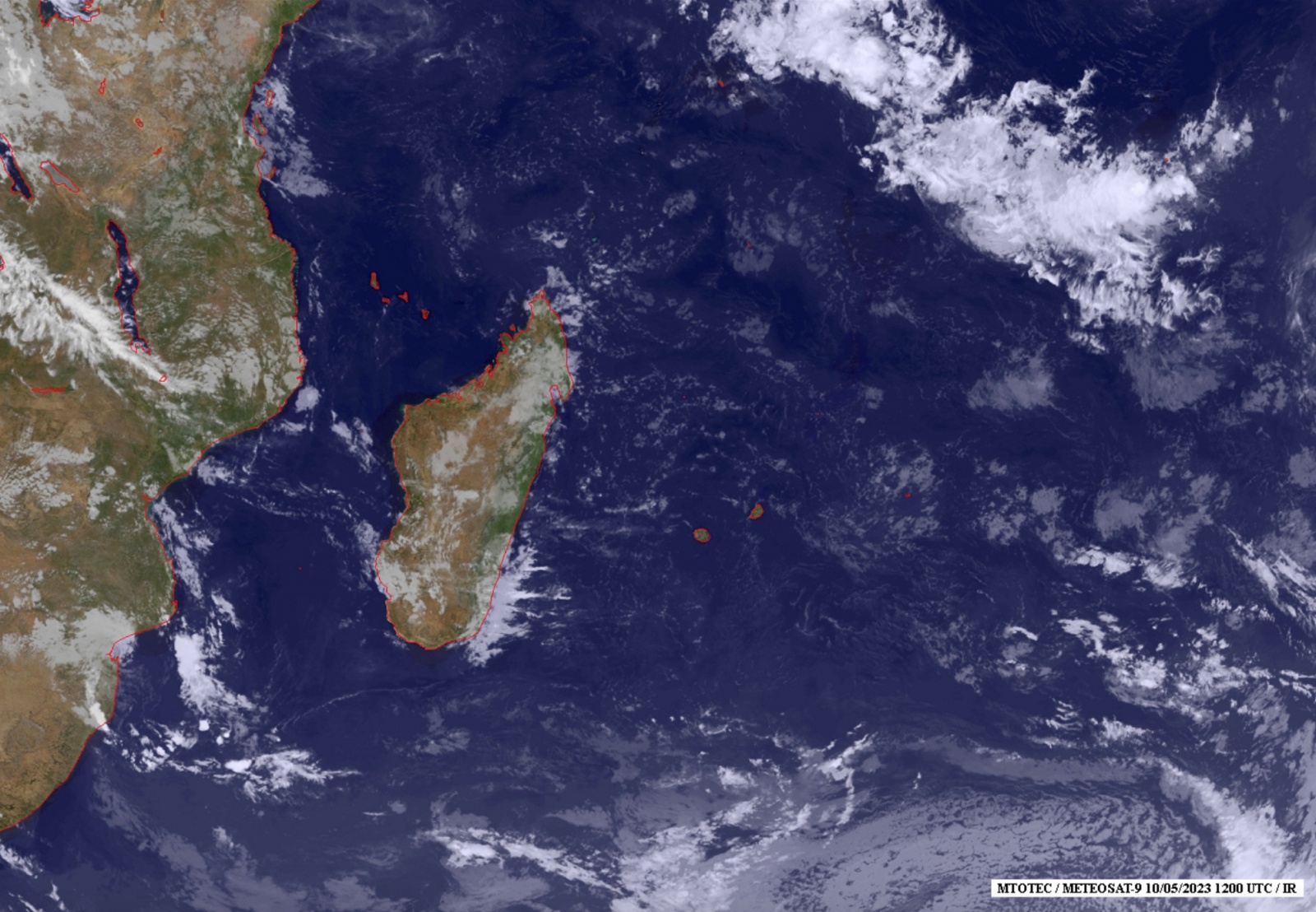 Météo France a annoncé ce mercredi 10 mai 2023 un risque de formation d'une tempête modérée sur les cinq prochains jours. La zone suspecte située sur l'extrémité est du bassin représente un risque très faible avec une probabilité inférieure à 10% de formation à partir de ce samedi 13 mai. "Ce risque devient faible (10 à 30%) dimanche 14 mai puis modérée (30 à 50%) à compter de lundi 15 mai" indique le bulletin météo (photo : Mtotec)