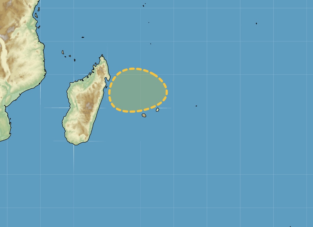 Si aucun système dépressionnaire n'est actuellement présent sur le Sud-Ouest de l'océan Indien, un risque de formation d'une tempête tropicale modérée pour les cinq prochains jours existe, annonce Météo France ce lundi 8 janvier 2024. Une zone suspecte sur le nord des Mascareignes devrait se développer jeudi ou vendredi. Il y a un risque modéré de formation d'une tempête tropicale d'ici samedi (Capture d'écran Météo France)