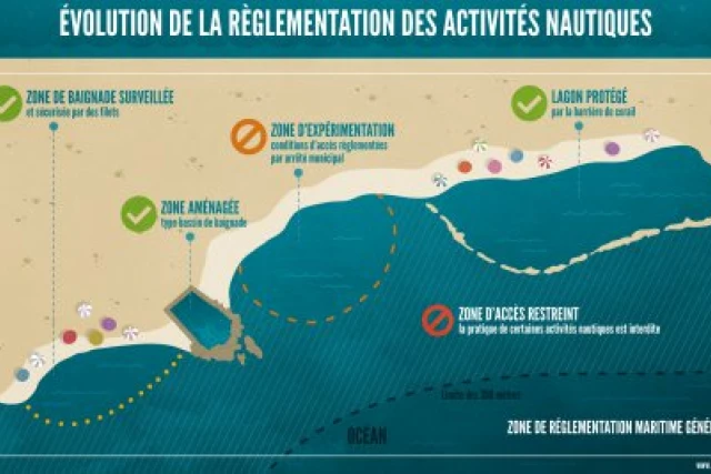 En dehors de ces zones, le risque requin est accru et il est interdit de s’y baigner ou d’y pratiquer des activités nautiques.