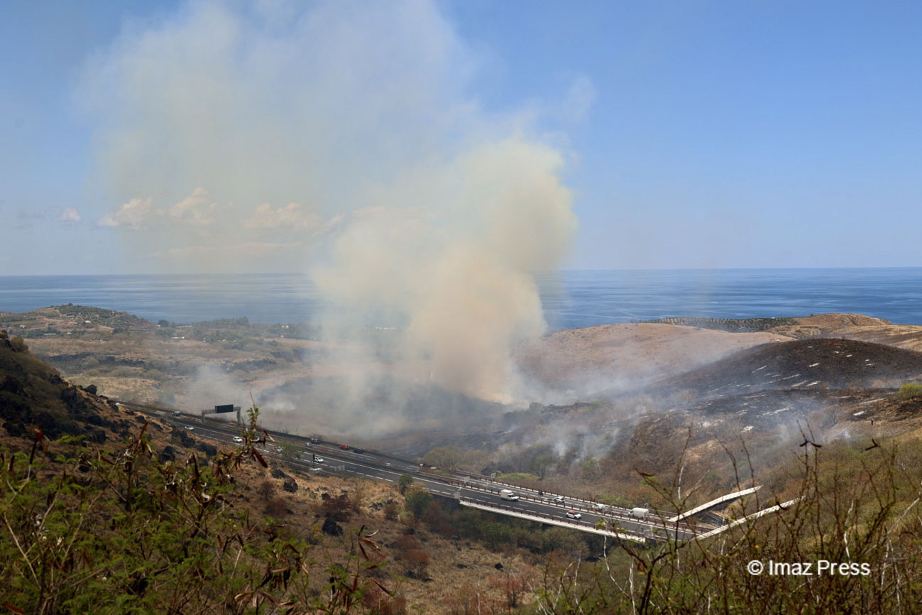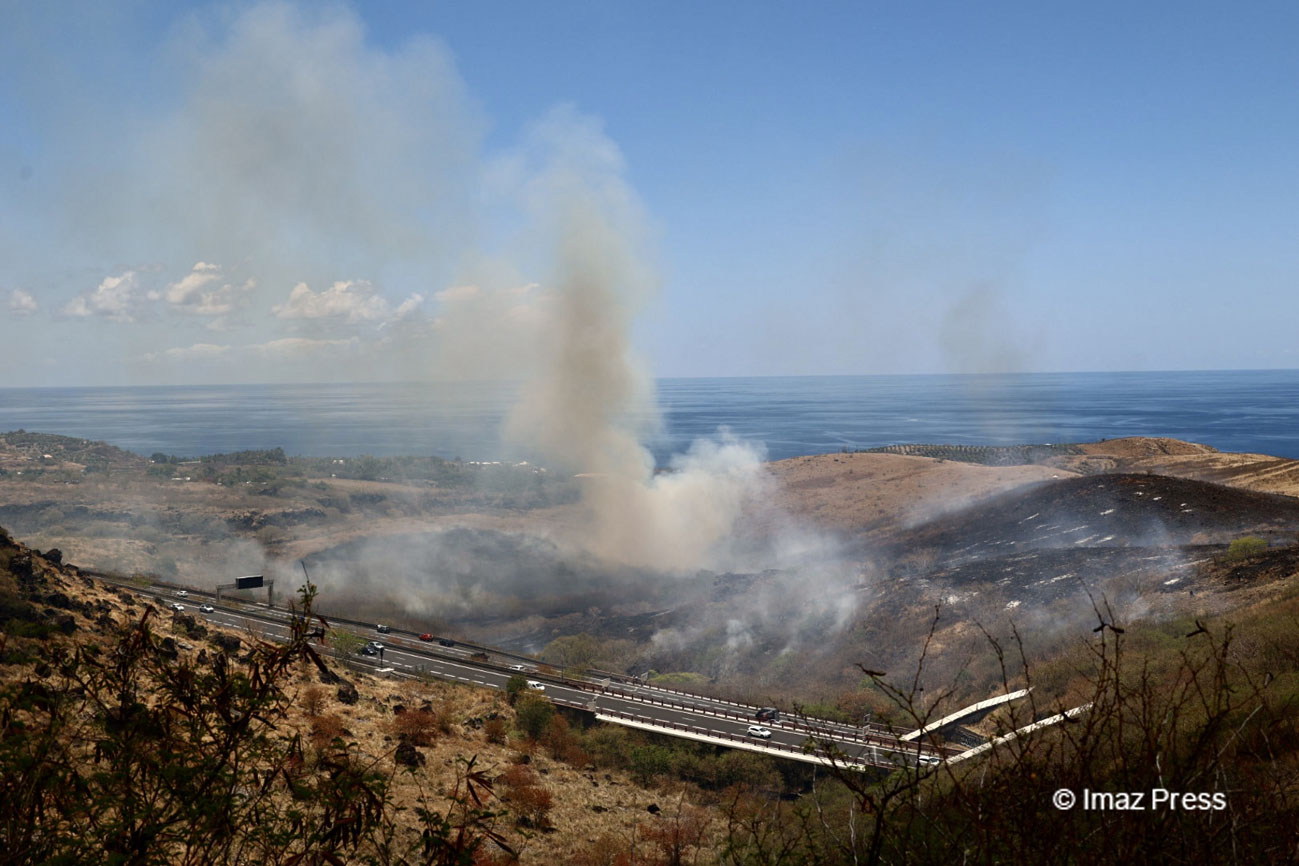 • De la fumée reste malgré tout visible sur la route des Tamarins.