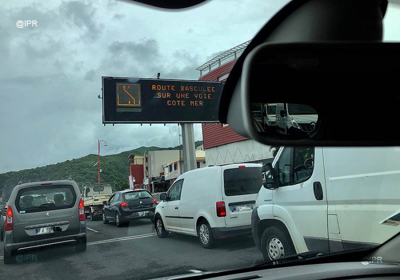 Depuis tôt ce ce mardi 8 janvier 2019 la route du littoral est basculé et les embouteillages sont présents même s'ils sont moins denses qu'en période hors vacances. Le basculement a été décidé en raison des fortes pluies qui s'abattent sur une bonne partie de l'île depuis ce lundi. Des grosses cascades déferlent le long de la falaise. La plus grande prudence est recommandée dans ce secteur (Photo d'illustration)