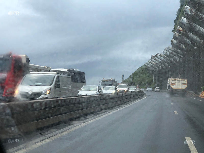 De grosses flaques se sont formées sur la route du littoral à causes des averses. Ces flaques rendent la chaussée glissante. Plusieurs pertes de contrôle ses sont produites durant la matinée.