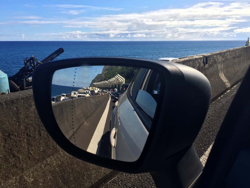 La galère sur la route du littoral est terminée ce samedi après-midi 19 septembre 2020. Les embouteillages se sont résorbés en début de soirée. La circulation a été difficile toute la journée. A 16 heures 45 heures la direction régionale des routes recensait encore 3 km de bouchons en direction de Saint-Denis et 3 km dans le sens inverse. Soit 6 km d'embouteillage cumulés contre 13 km à 13 heures 30. C'est la fermeture de l'entrée ouest de Saint-Denis entre le tunnel et l'intersection avec la rue Lucien Gasparin qui à l'origine des bouchons (Photo rb/www.ipreunion.com)