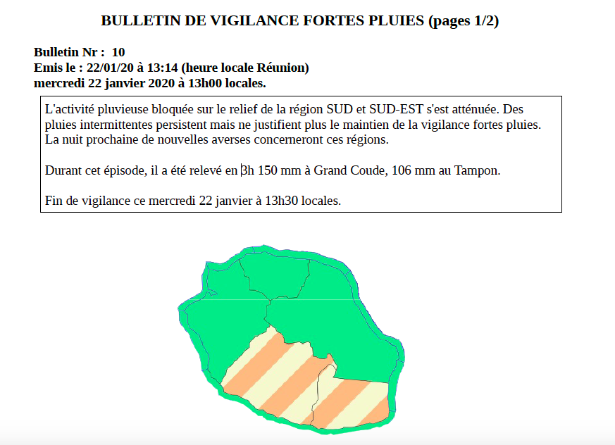 La vigilance fortes pluies en vigueur depuis ce matin sur les régions sud et sud-est levée à 13h30.