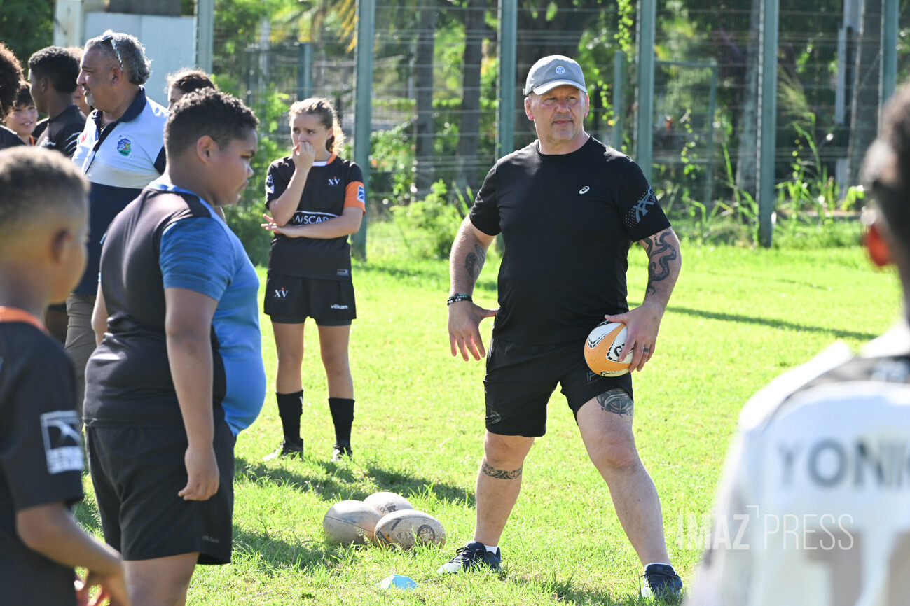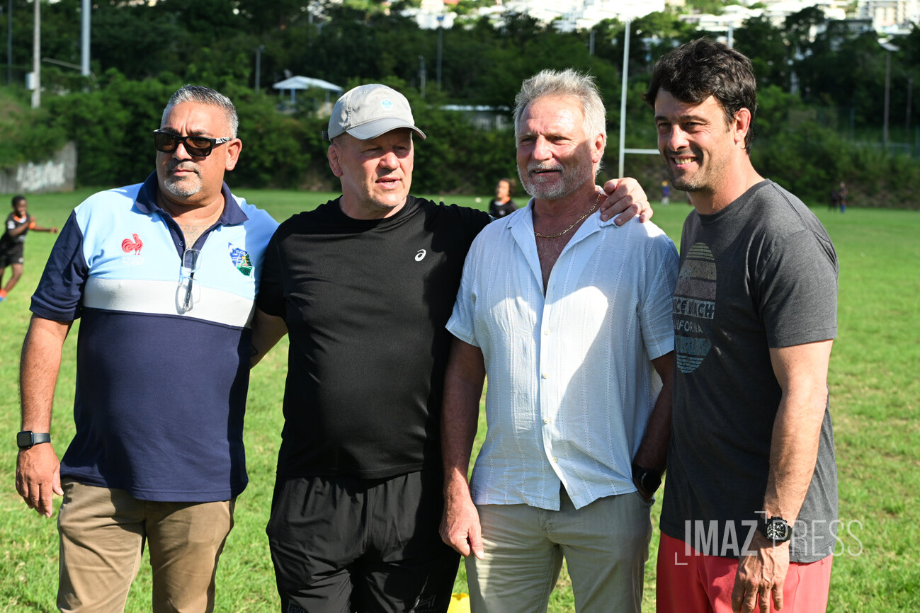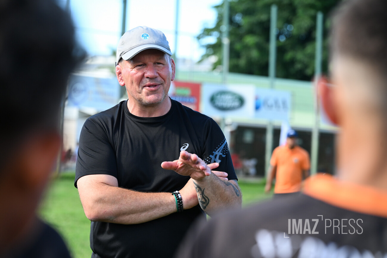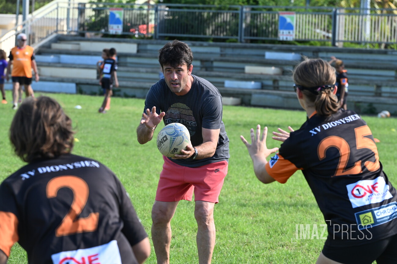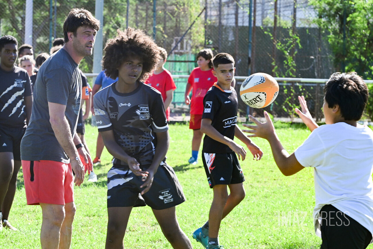 Ce mercredi 14 mai 2025, deux anciens internationaux français, Christian Califano et Xavier Garbajosa, ont dirigé un entraînement aux côtés de jeunes joueurs des clubs du nord de La Réunion. Une séance placée sous le signe de la transmission, qui s’inscrit dans une dynamique de développement du rugby sur l’île. (Photos : Emmanuel Grondin www.imazpress.com)