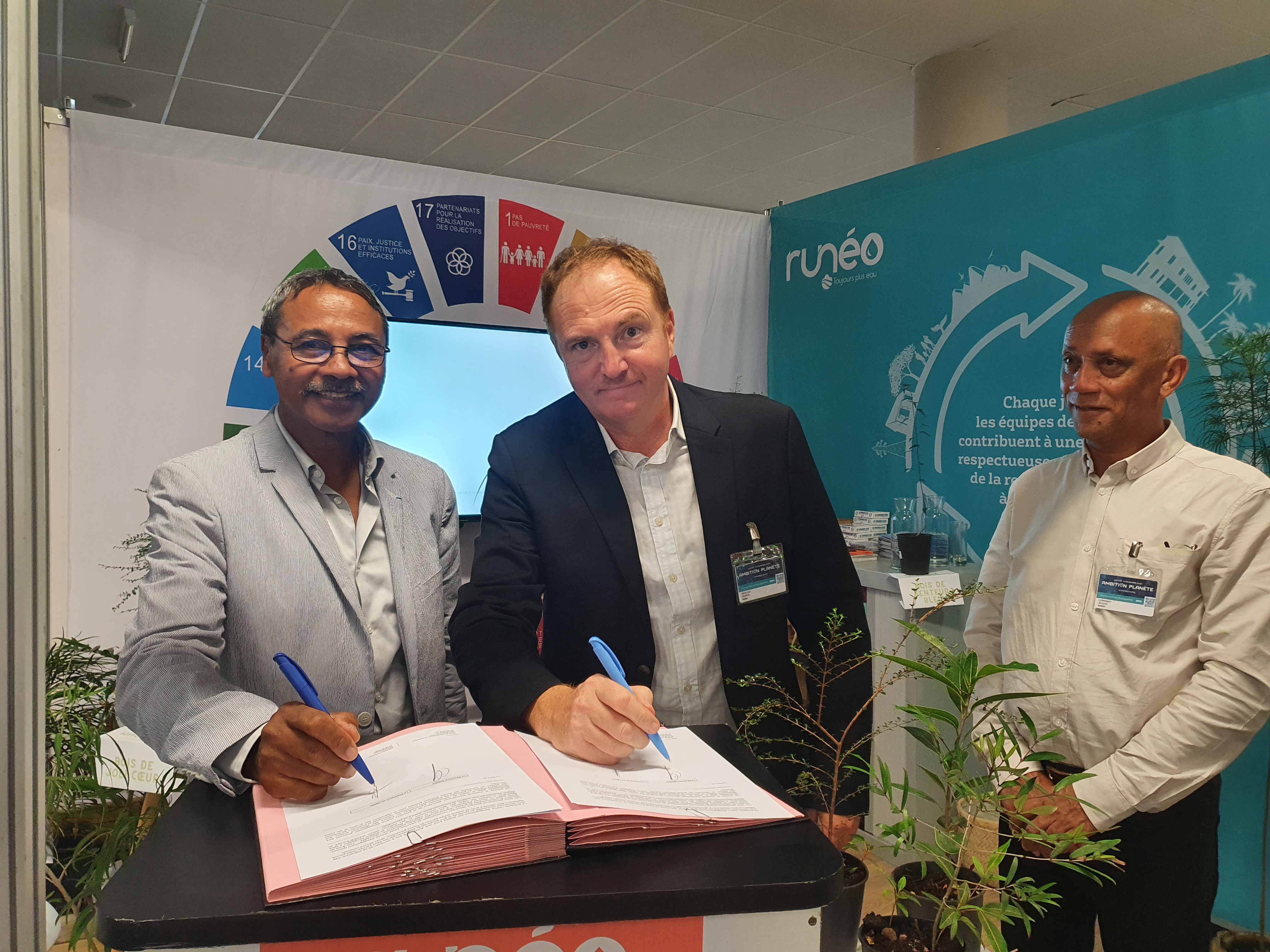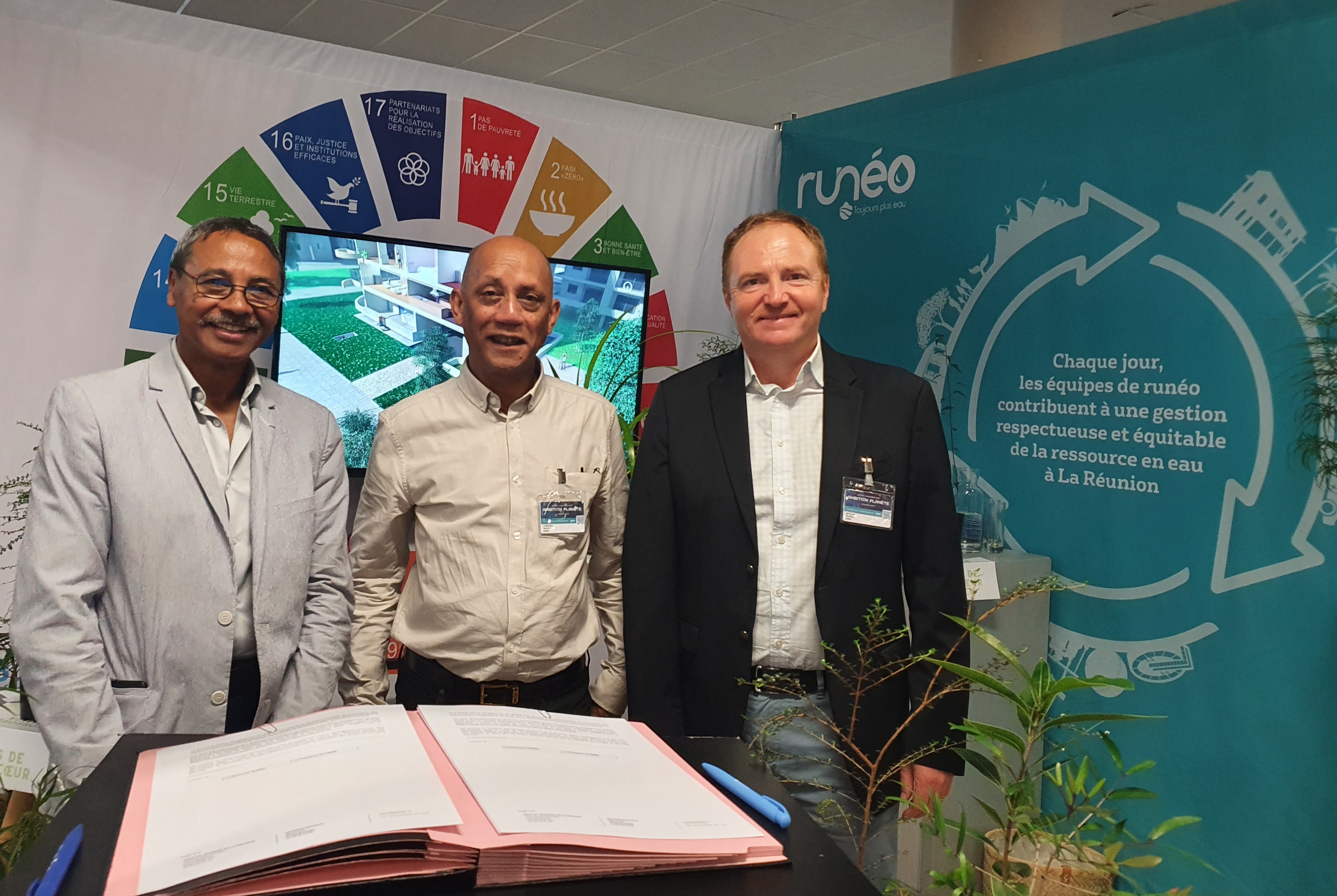 La signature de la Démarche Aménagement Urbain et Plantes Indigènes - DAUPI - entre runéo et le Conservatoire Botanique National de Mascarin (CBN-CPIE Mascarin), ce mercredi 9 novembre lors du Salon Ambition Planète, marque la volonté de runéo d'aller plus loin dans la concrétisation de son engagement en faveur de la biodiversité sur le territoire. Industriel responsable, c’est ainsi que runéo souhaite exercer sa mission de prendre soin de l’Eau de sa source à sa restitution à la nature.