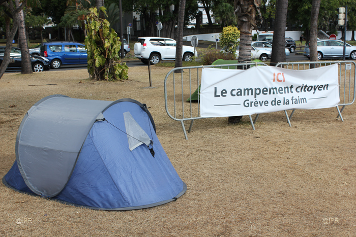 En face de la préfecture, sur le Barachois, ce sont ainsi une demi-douzaine de tentes qui ont été dressées. Assis, en bas du monument en mémoire du Général de Gaulle, Samuel Mouen affiche plus que jamais sa détermination. À ses côtés, deux sympathisants, dont Philippe Régnier, ardent défenseur des personnes porteuses de handicap.