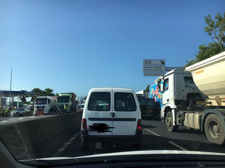 De gros bouchons commencent à se former dans les secteurs de la Cocoteraie à Saint-André et au niveau de Gillot. Les manifestants laissent passer les véhicules légers mais bloquent les camions