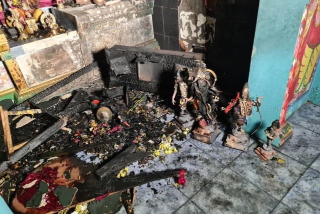 Dans la nuit du 17 au 18 octobre 2022, une incendie a ravagé le temple Maryen Peroumal, situé à Saint-André. Le député Jean-Hugues Ratenon et le maire de la ville de Saint-André, Joé Bedier réagissent et adressent leur soutien aux membres de l'association Maryen Peroumal ainsi qu'aux fidèles du temple. Nous publions ci-dessous leurs témoignages et réactions. (Photo : L'association Maryen Peroumal)