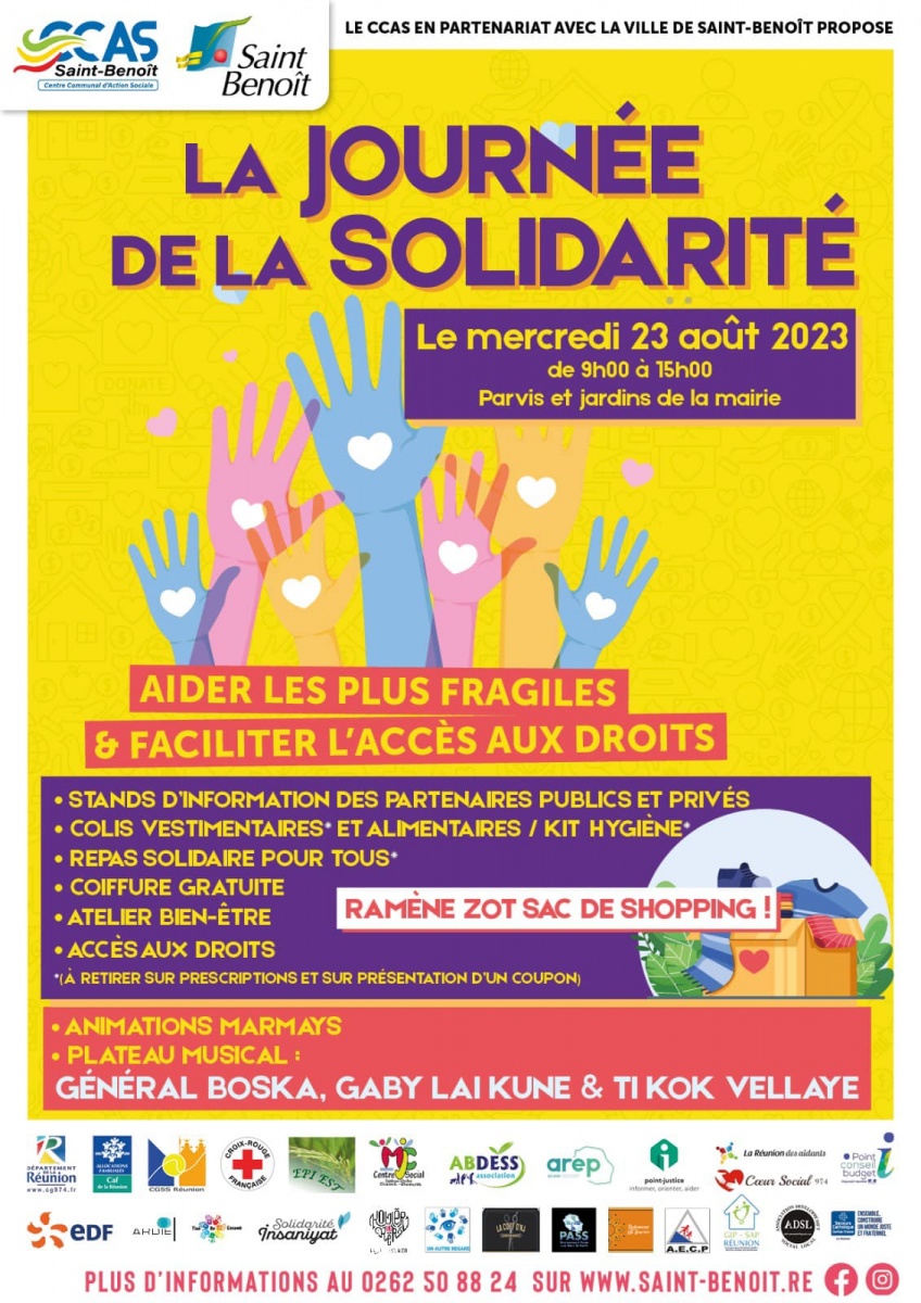 Le Centre communal d'action sociale (CCAS) de Saint-Benoît, en partenariat avec la Ville, organise la première édition de la Journée de la Solidarité sur le thème "aider les plus fragiles et faciliter l’accès aux droits". Cette journée aura lieu ce mercredi 23 août 2023 de 9h à 15h, sur le parvis et dans les jardins de la mairie de Saint-Benoît. Au programme animations et plateau musicale (Photo sly/www.imazpress.com)