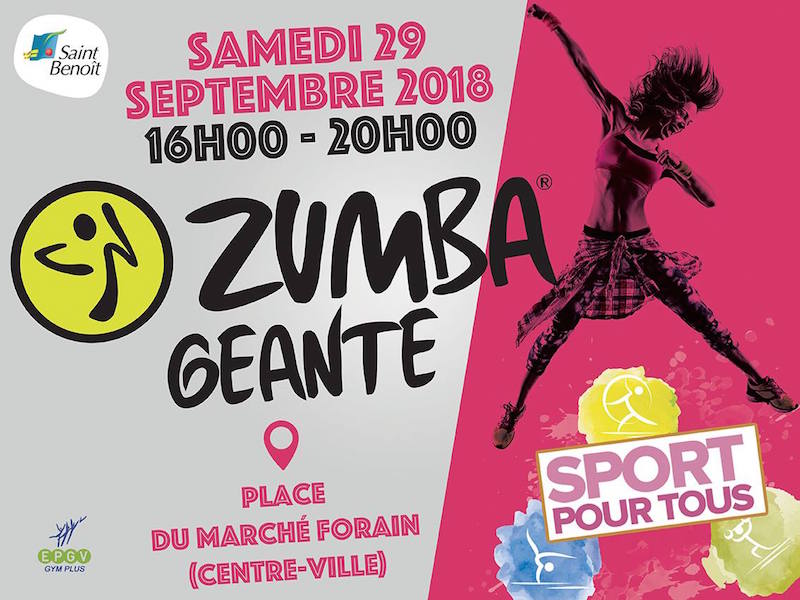 Dans le cadre du dispositif Sport pour tous, la Ville de Saint-Benoît organise une Zumba Géante le samedi 29 septembre 2018 sur la Place du marché forain ! Plusieurs activités sportives sont au programme mais les organisateurs ont aussi prévu des animations de détente.