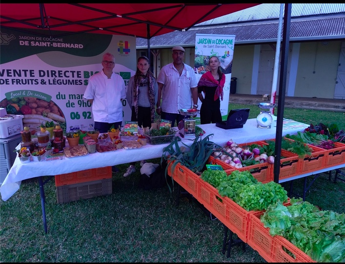 Certifié Bio par CertipaQ Bio, organisme certificateur indépendant, le Jardin de Cocagne de Saint-Bernard s’étend sur 5 hectares de terrain et dispose de 1000 m² de serres de production bio sur la commune de Saint-Denis. Ce qui lui permet de produire chaque semaine une centaine de paniers de légumes bio à un réseau d’adhérents consommateurs, mais aussi des paniers solidaires qui permettent de soutenir l'emploi des salariés en insertion sur le Jardin de Cocagne. En effet, rien ne serait possible sans l’équipe de l’exploitation composée de 35 salariés en insertion travaillant avec les encadrants maraîchers. Le Jardin Cocagne est aussi à vocation d’insertion sociale et professionnelle. Avec l’engagement de ces 110 adhérents consommateurs, l’exploitation peut permettre aujourd’hui à ces salariés en insertion de bénéficier
