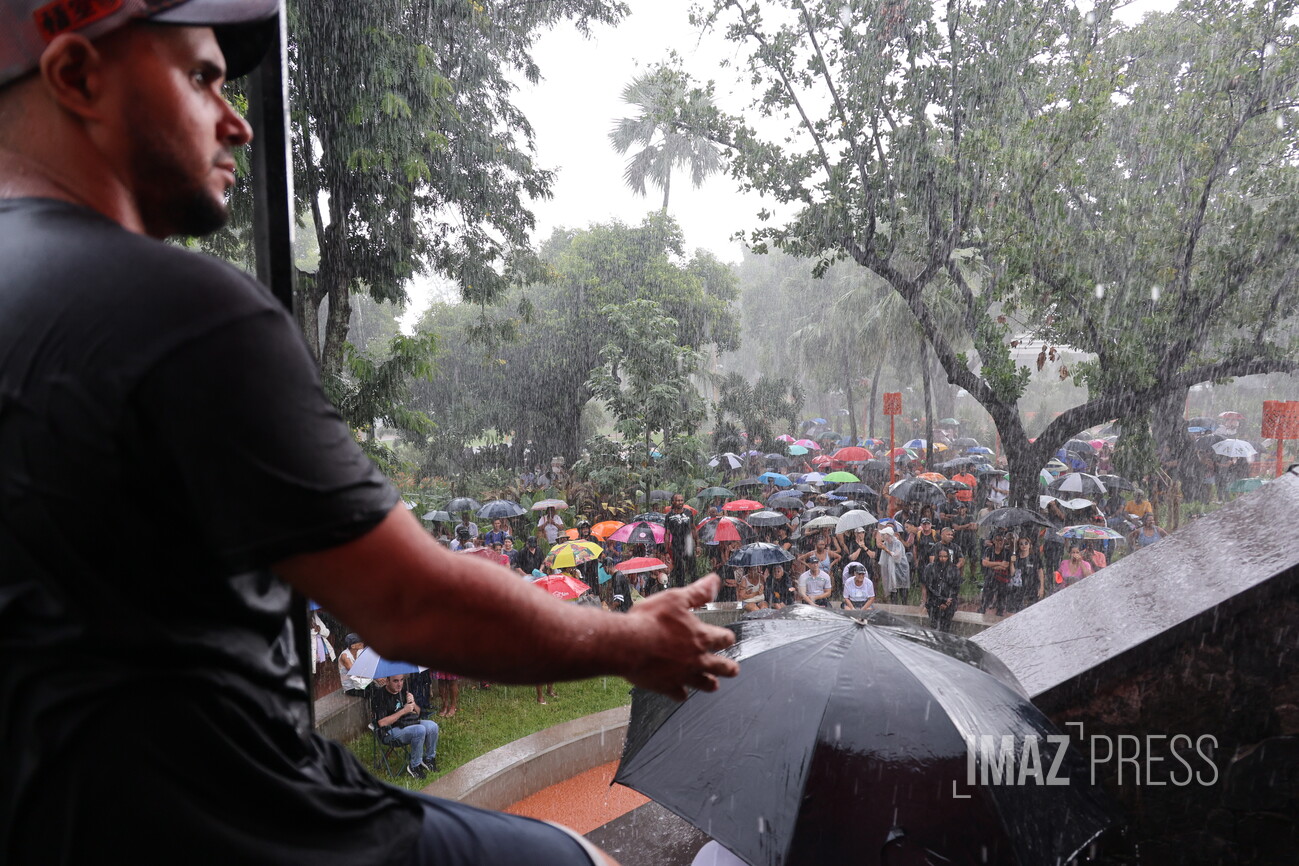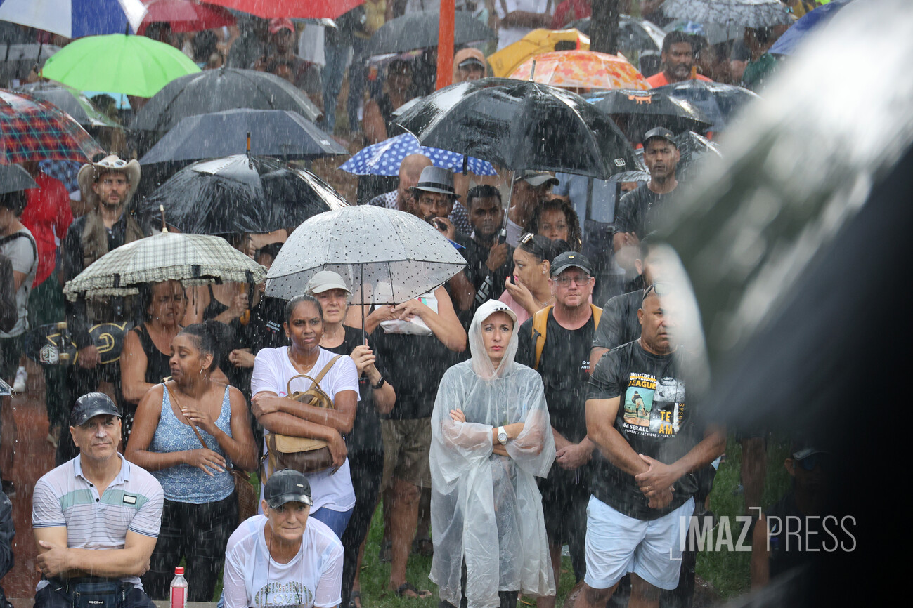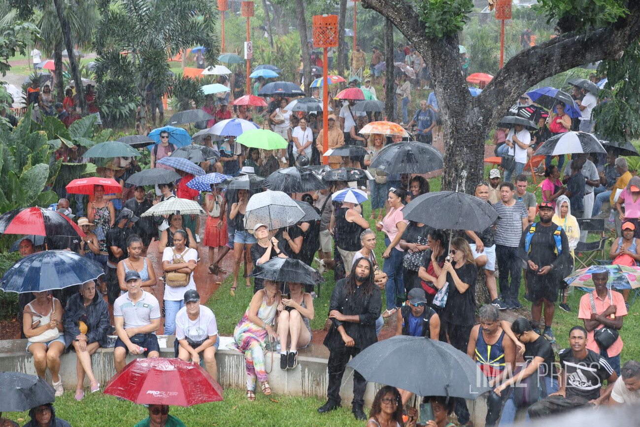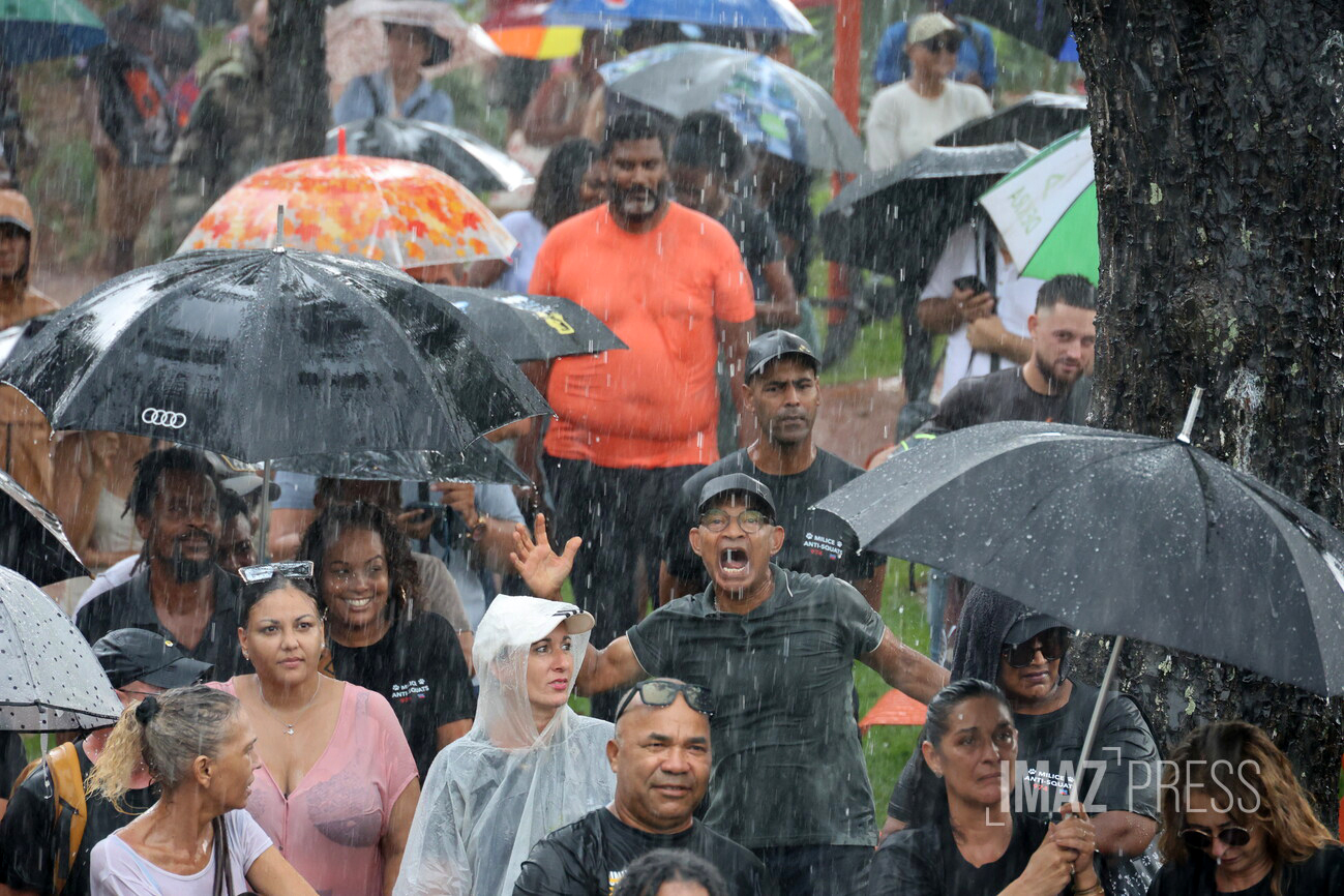 Les prises de parole s'enchaînent sous la pluie battante. La question du transfert de détenus entre La Réunion et Mayotte est abordée, tandis qu'un père de famille dit "que le problème c’est pas les Mahorais ou les Comoriens".