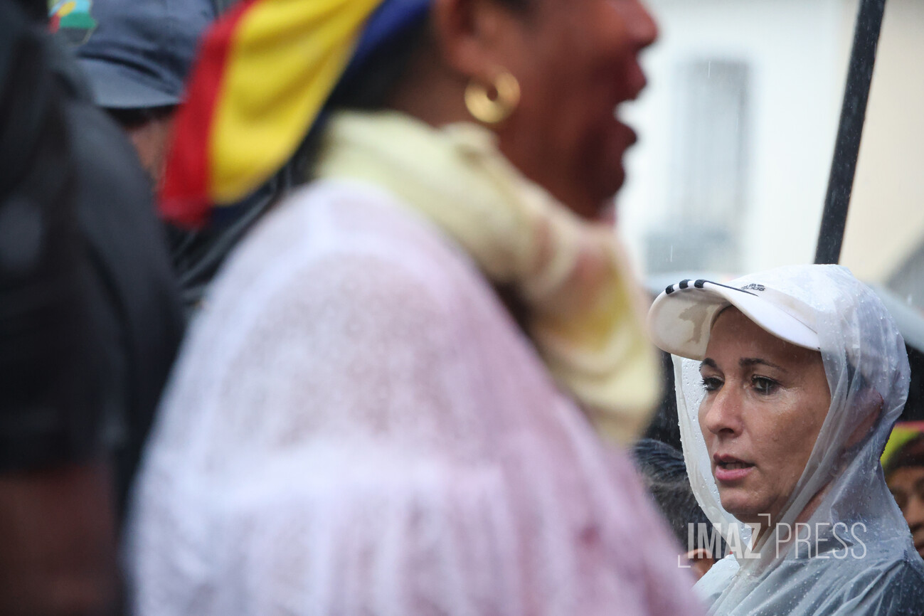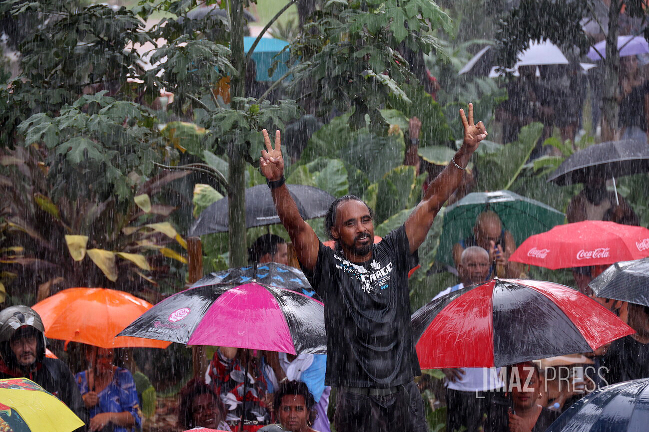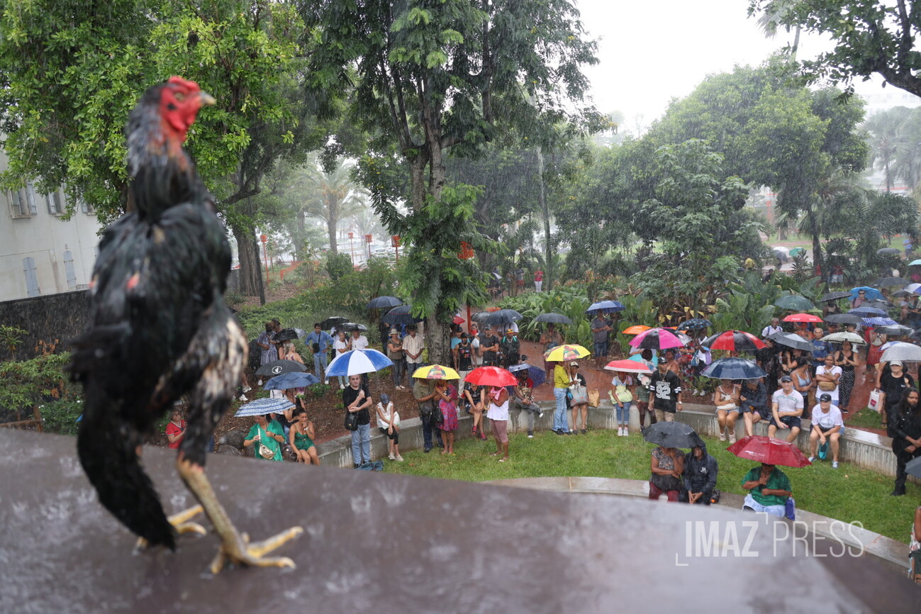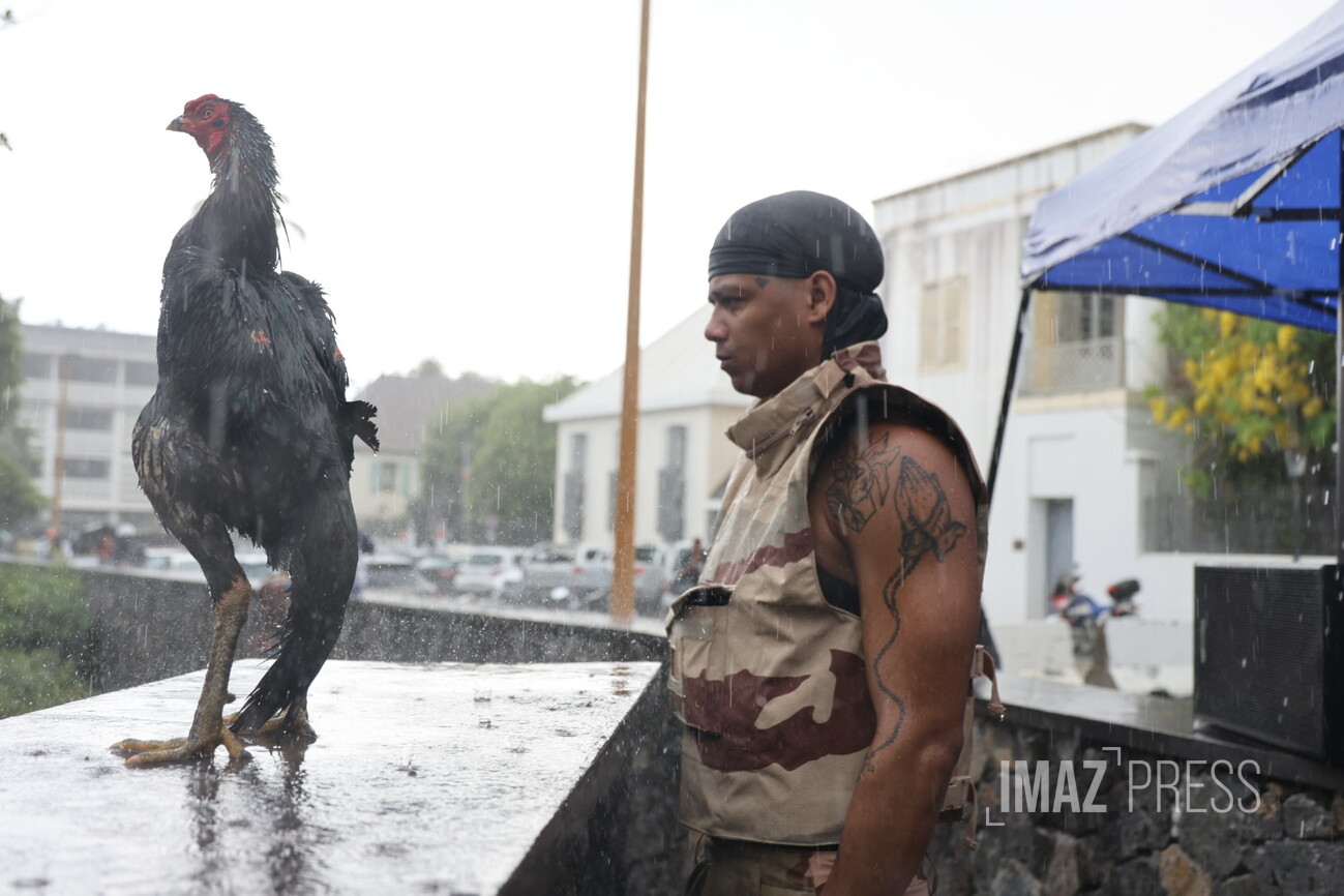 Les prises de parole s'enchaînent sous la pluie battante. La question du transfert de détenus entre La Réunion et Mayotte est abordée, tandis qu'un père de famille dit "que le problème c’est pas les Mahorais ou les Comoriens".