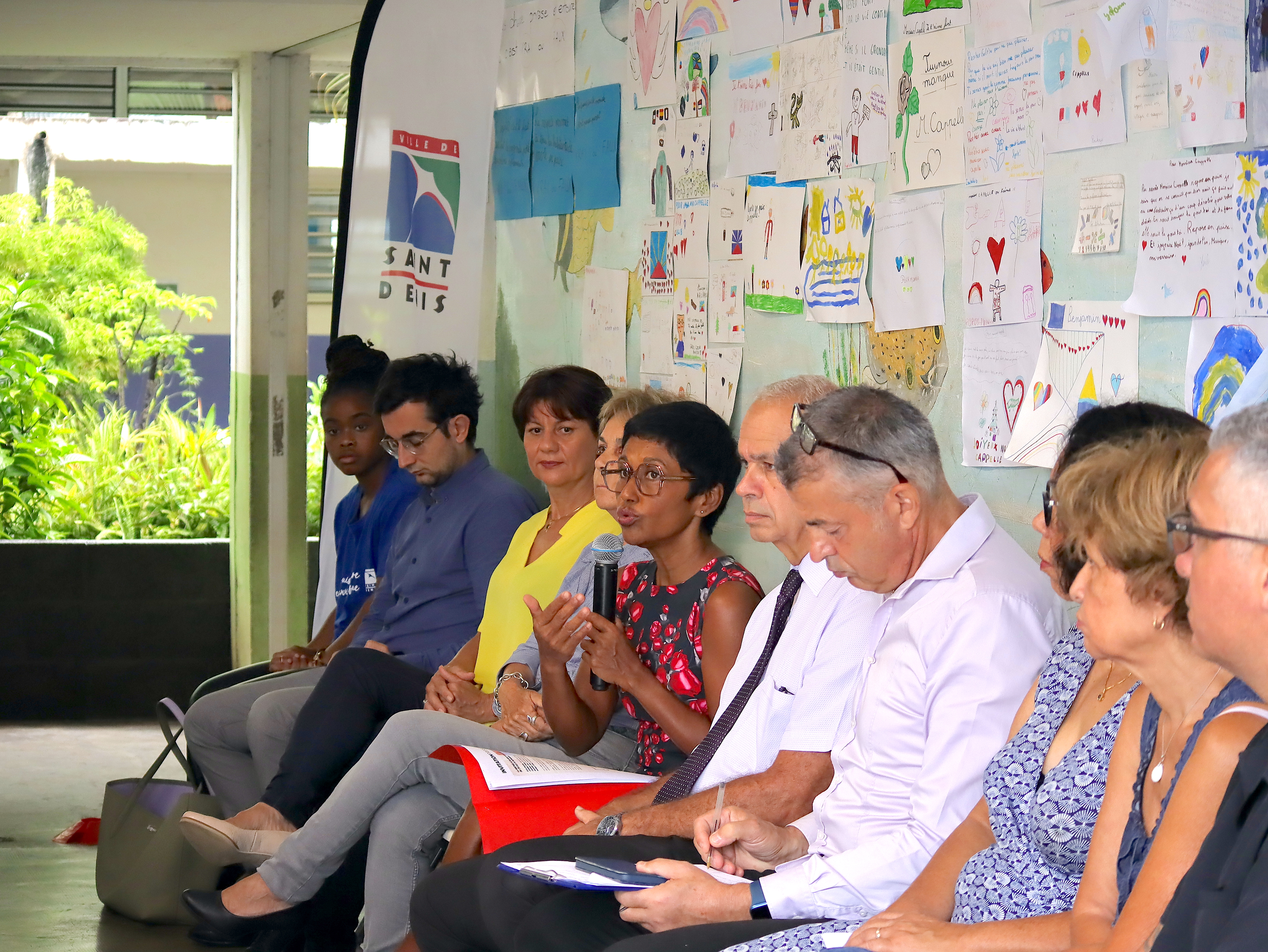 Ericka Bareigts, Maire de Saint-Denis : « C’est la rentrée des classes de janvier mais il était important de faire une rencontre afin d’expliciter notre co-construction avec l’Éducation nationale et populaire. L’éducation est compliquée et c’est notamment pourquoi nous devons rester humble et jouer collectif. La CAF, les associations ou encore les services civiques, tout le monde est préoccupé par la réussite des enfants et cette dernière passe par des moyens qui leur permettent d’avoir confiance en eux, notamment pour ceux qui n’ont pas forcément un environnement favorable. Le but est d’aider les enfants à développer des compétences psychosociales afin que chacun d’entre eux puisse trouver son propre bonheur. »