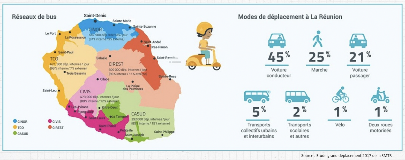 plus qu’à La Réunion 1 personne/7 est titulaire du permis de conduire et que près de 35.000 véhicules supplémentaires sont
