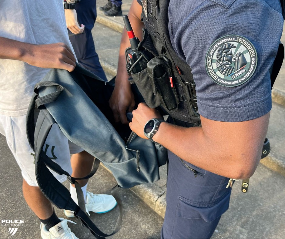 Ce vendredi matin 2 mai 2025, une quinzaine de policiers ont procédé à des contrôles à l'entrée des élèves du collège Bois de Nèfles à Saint-Denis. Aucune infraction n'a été constatée (Photo : Police)