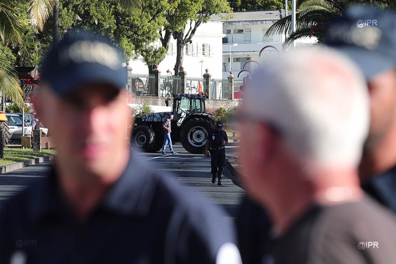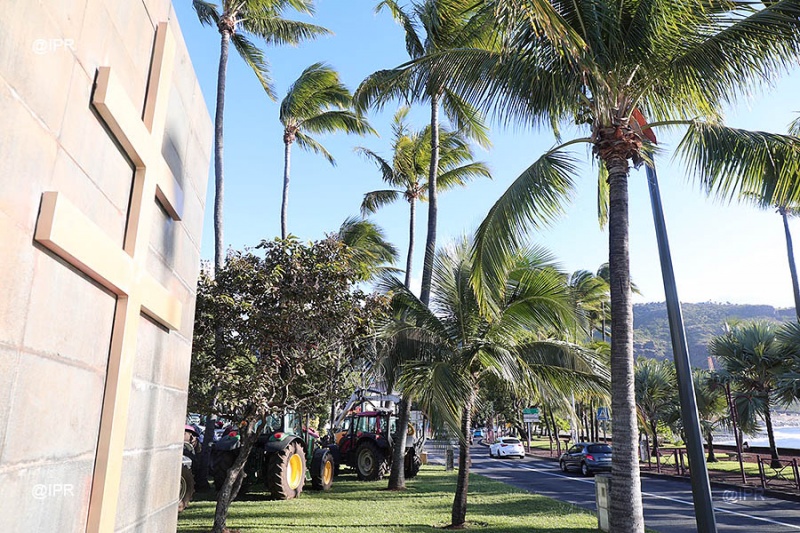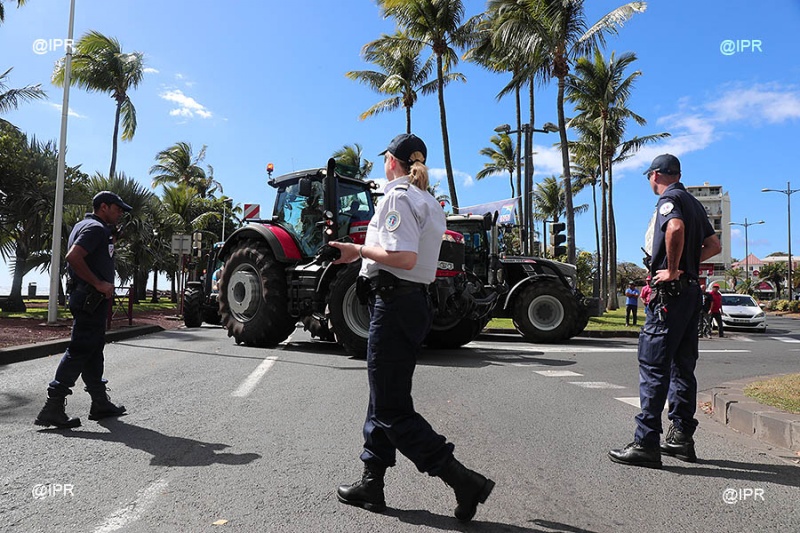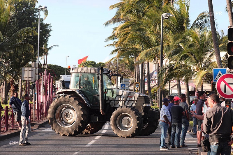 • 15h34 - Les planteurs s'impatientent devant la préfecture. Un tracteur se positionne sur la chaussée. La circulation est bloquée sur le Barachois. Le trafic est dévié par la rue Lucien Gasparin. La direction régionale des routes conseille aux usagers d’emprunter la RN6 Boulevard Sud.