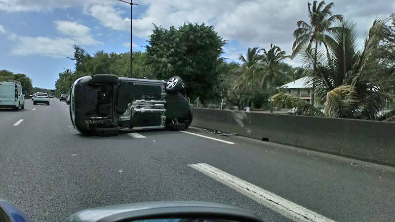 Vers 10h ce matin, un accident spectaculaire s'est produit : un 4X4 qui ciruculait en direction de l'Est a fait plusieurs tonneaux et a abouti sur le côté droit, en travers de la voie de droite et de la bande d'arrêt d'urgence. Le chauffeur a réussi à s'extraire par la portière. Heureusement, aucun autre véhicule n'a été impacté par cette perte de contrôle.