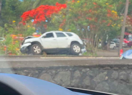 En début d'après midi ce dimanche 1er décembre 2024, un automobiliste a perdu le contrôle de son véhicule proche du parc de la Jamaïque à Saint-Denis, à hauteur de l'aire de pique-nique. L'accident a fait un blessé léger qui a été pris en charge par les secours. La CRGT constate des dégâts sur des panneaux de signalisations et un lampadaire. Le véhicule étant dans le fossé, la circulation reste fluide. (Photo prise par une automobiliste)