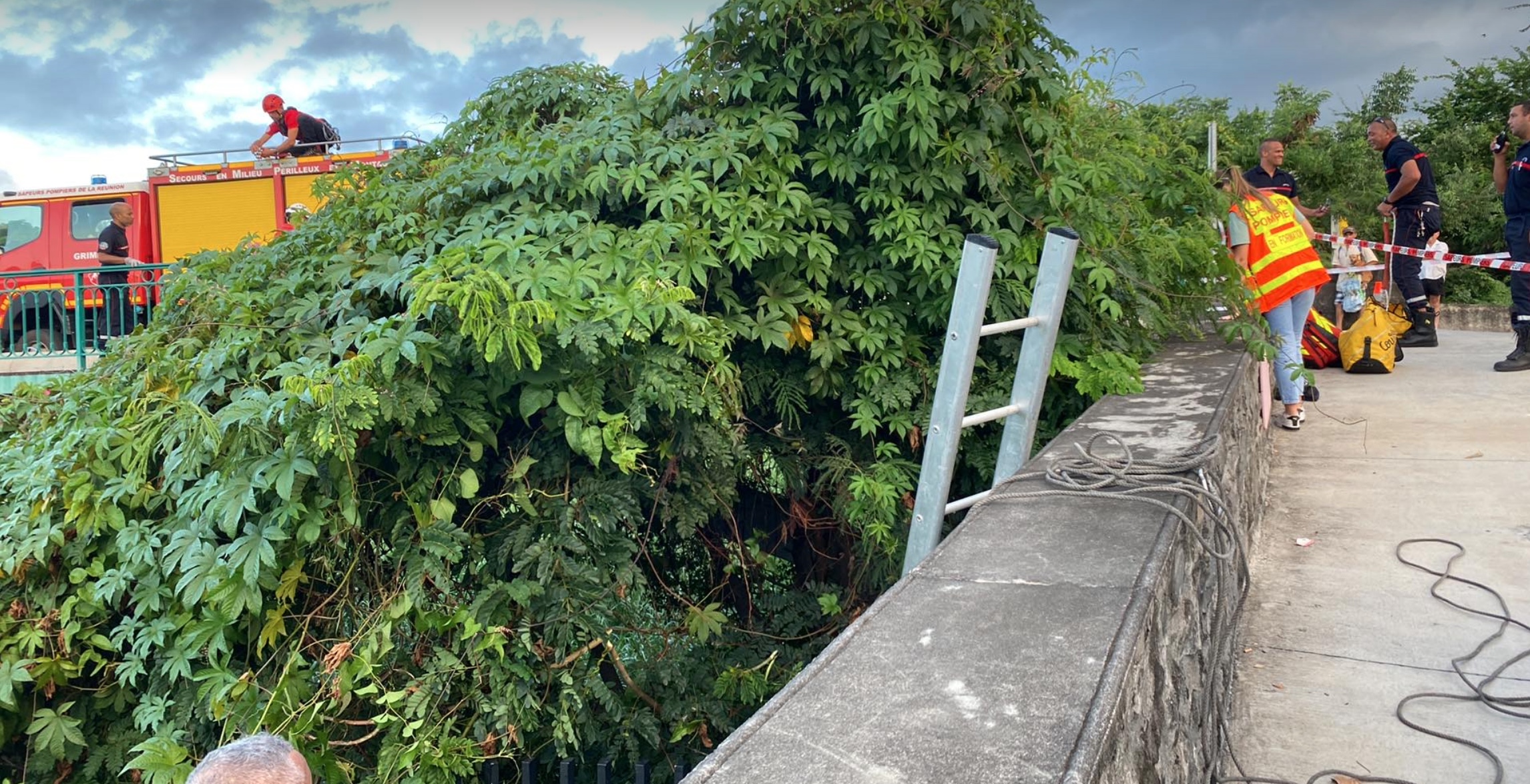 Un homme d’une cinquantaine d’années a fait une chute de 6 mètres et s'est blessé à la tête à Saint-Denis dans le quartier de Bas de la rivière. L'individu est tombé dans le lit de la rivière alors qu’il était assis sur un muret. Les forces de l'ordre, les pompiers, le SMUR et le Groupe de reconnaissance et d'intervention en milieu périlleux (GRIMP) sont intervenus sur place pour venir en aide à la victime qui a été remontée consciente. (photo AS/www.imazpress.com)