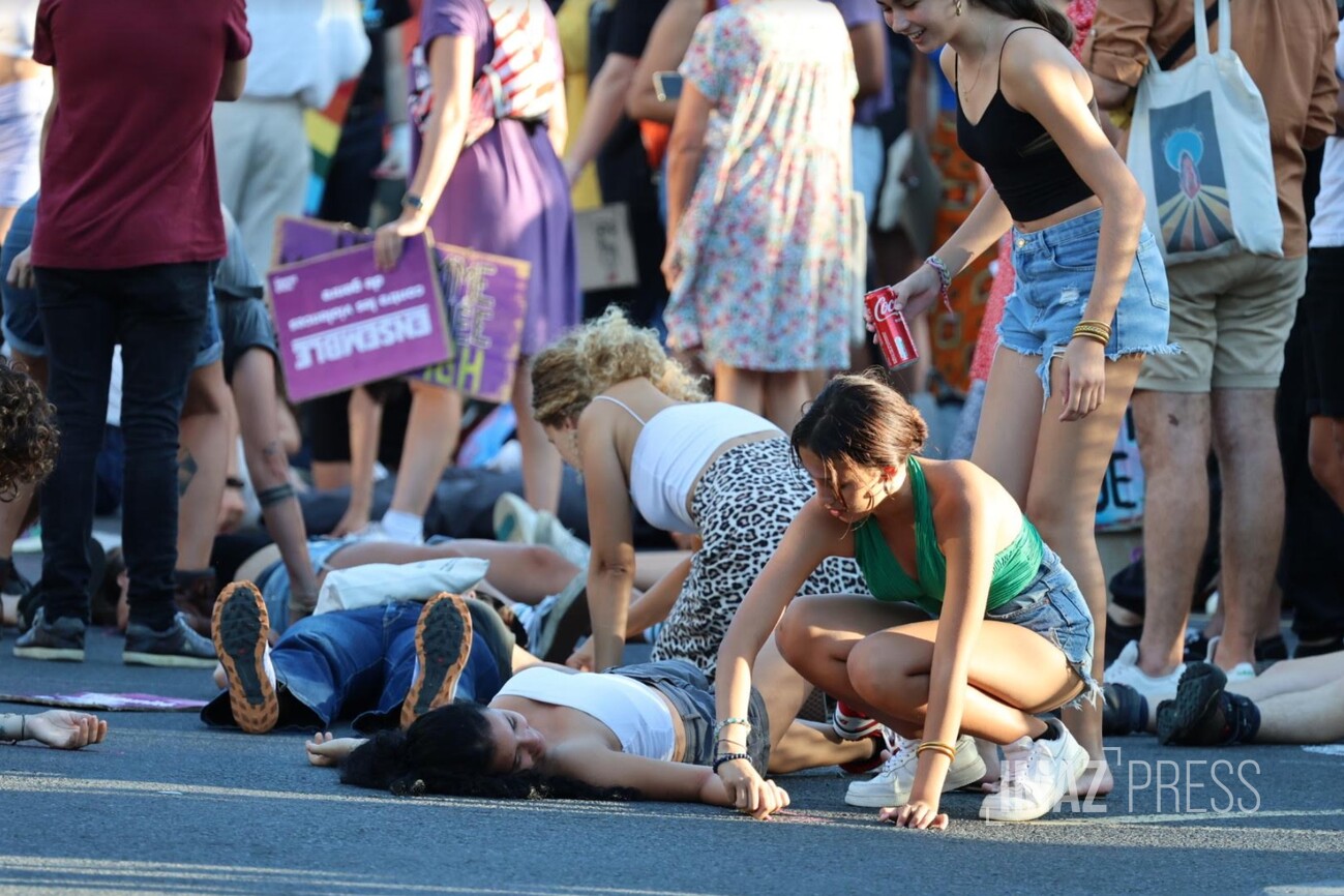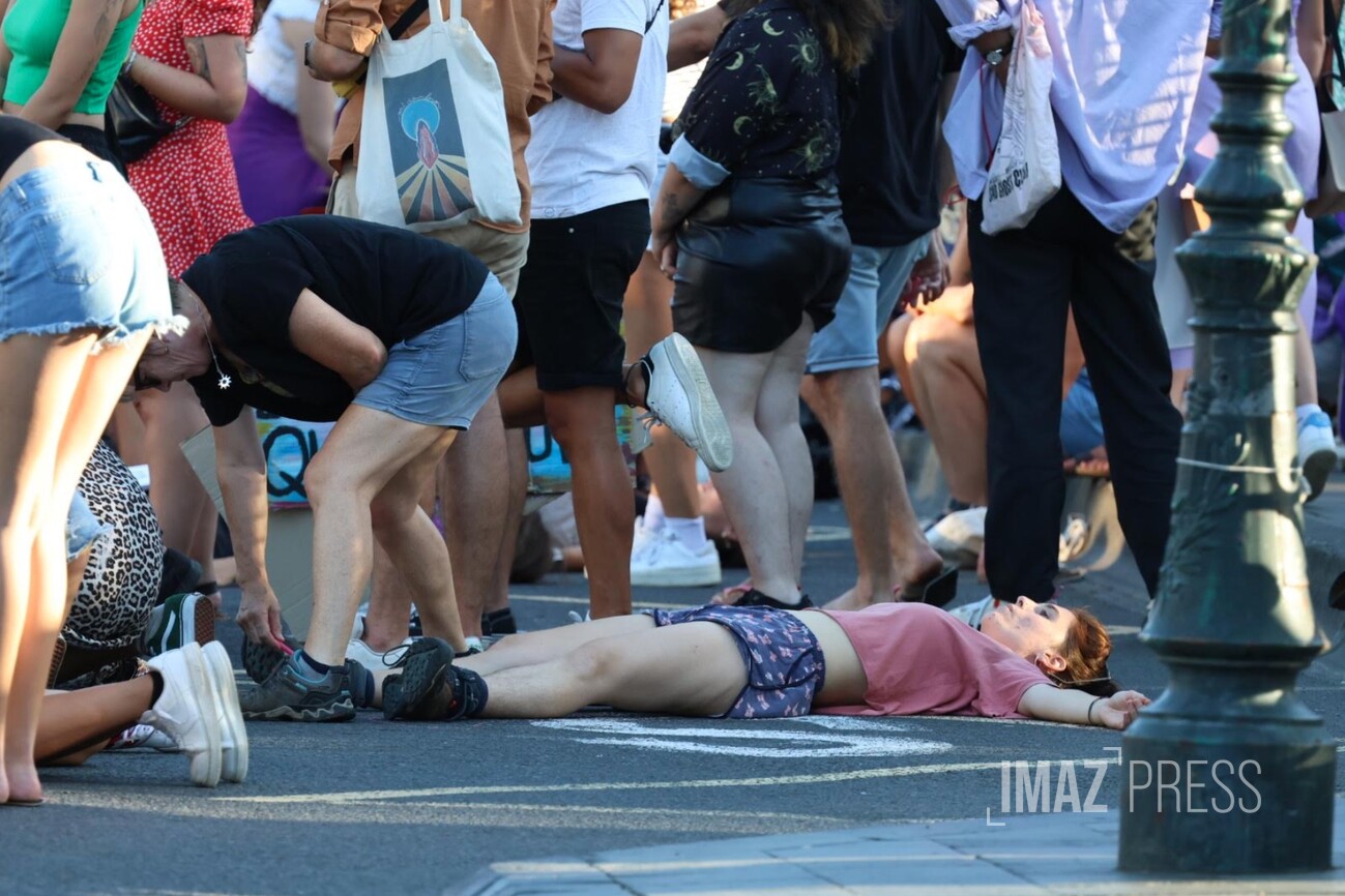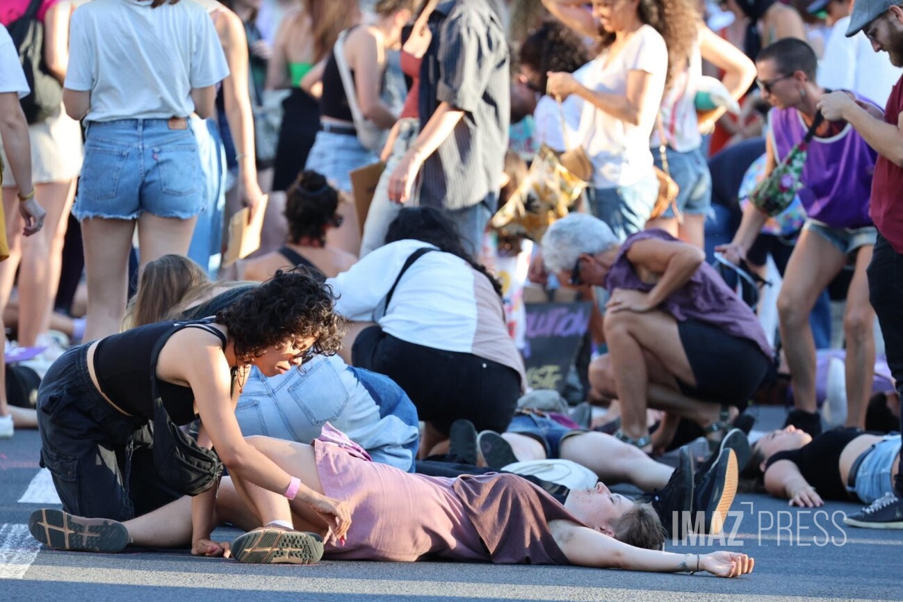Des femmes s'allongent au sol