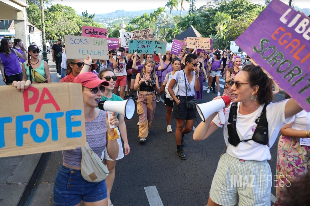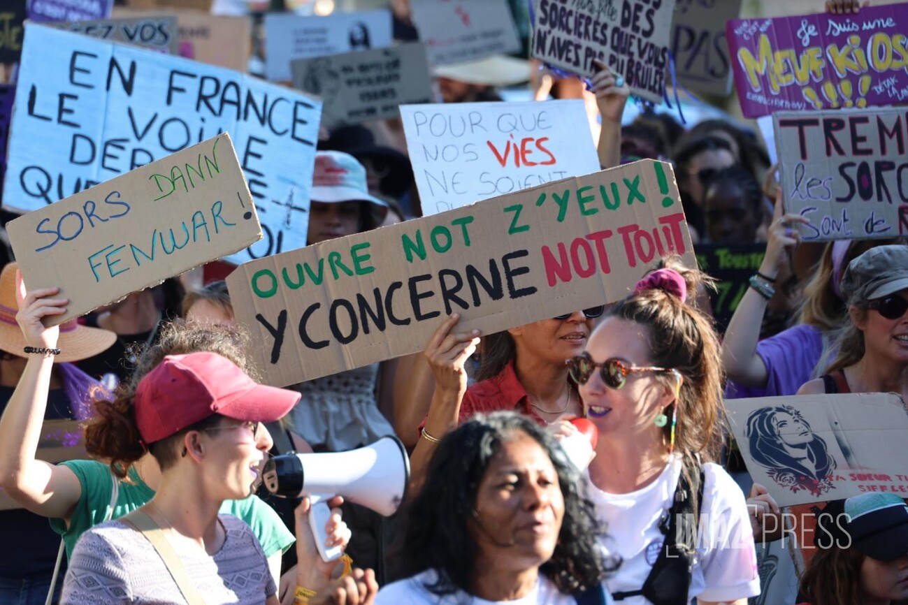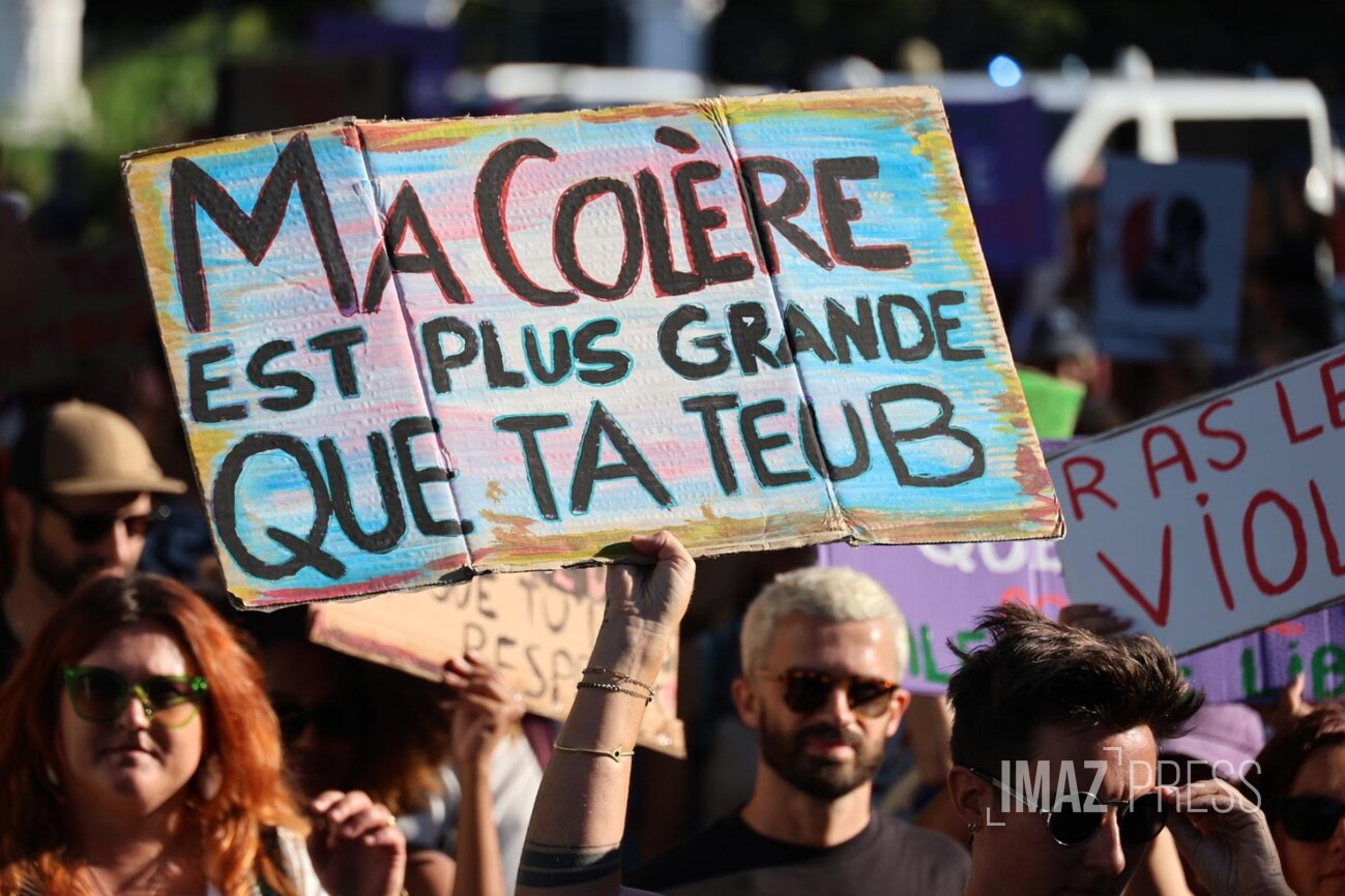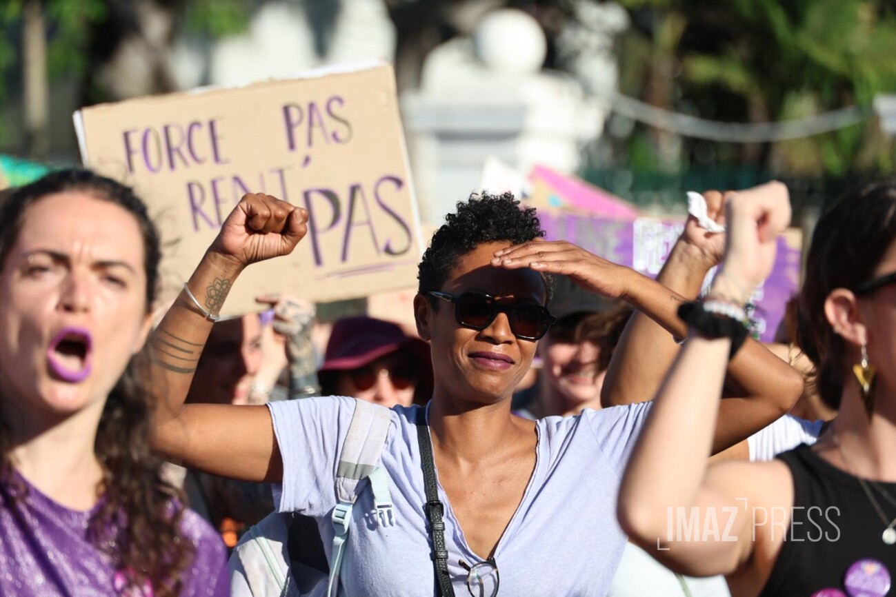 En ce 25 novembre 2023, journée pour l'élimination des violences faites aux femmes, de nombreux événements sont prévus dans l'île pour sensibiliser à cette lutte. Temps forts de la journée : une marche organisée par le collectif Nous Toutes 974 à Saint-Denis. Au-delà des violences faites aux femmes, le collectif veut aussi dénoncer toutes les violences subies par les minorités de genre et sexuelles, ainsi que par les enfants. Des problématiques particulièrement importantes alors que les violences intrafamiliales sont un véritable fléau à La Réunion. (Photo photo Sly/www.imazpress.com)
