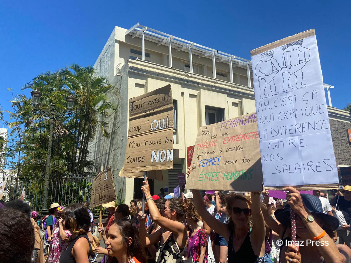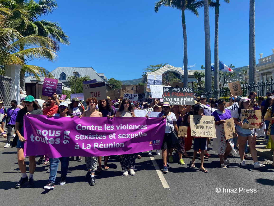 Dans la lignée de la journée mondiale pour l’élimination des violences faites aux femmes, qui s’est tenue ce vendredi 25 novembre 2022, une marche contre les violences sexistes se tient ce dimanche à Saint-Denis. Cette marche, organisée par le collectif féministe Nous Toutes 974, a débuté aux alentours de 14h, avec un départ depuis le Jardin de l'Etat. Les personnes se sont ensuite dirigées progressivement vers la préfecture de Saint-Denis. Environ 200 personnes ont défilé le long de la rue de Paris. (Photos : as/www.imazpress.com)