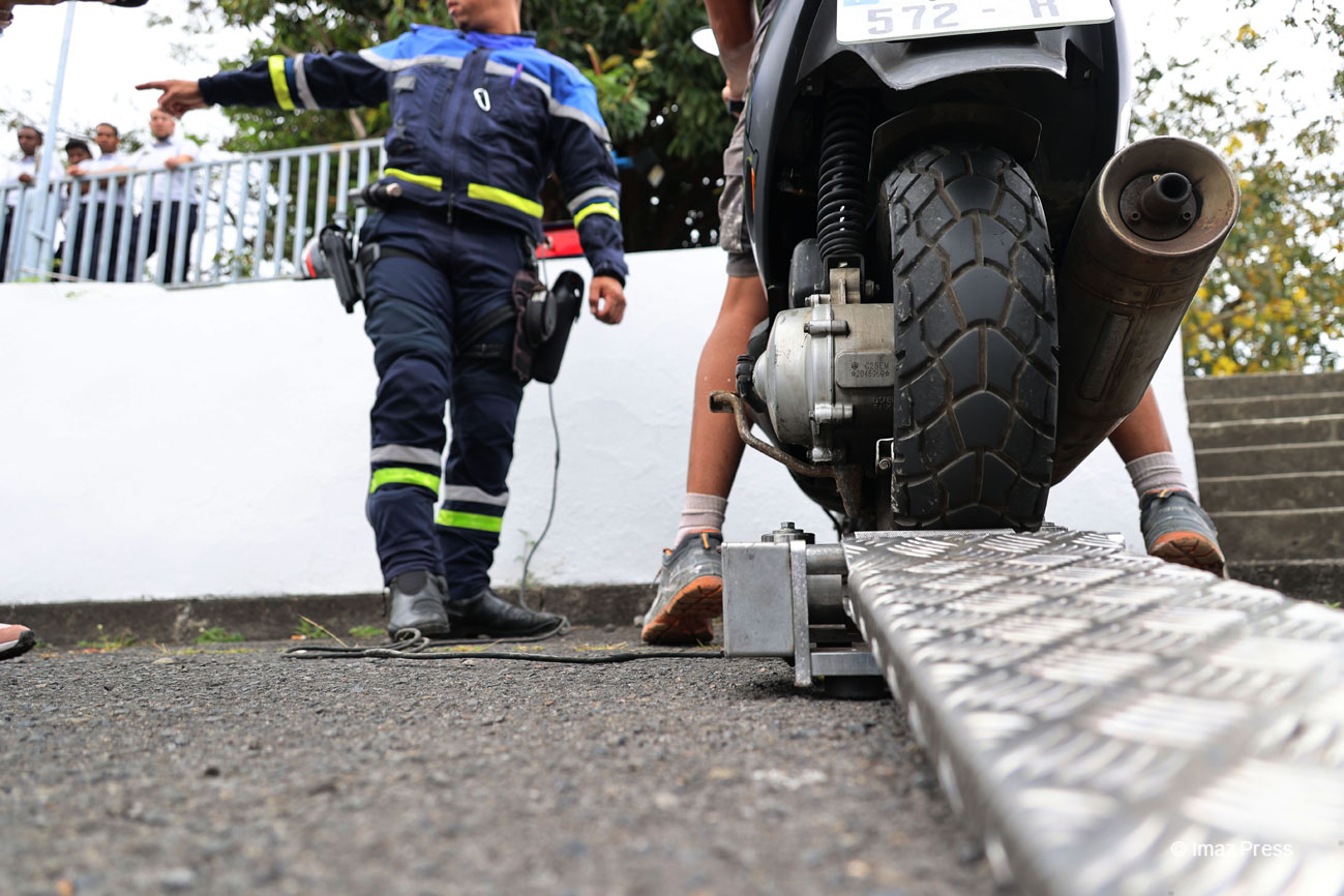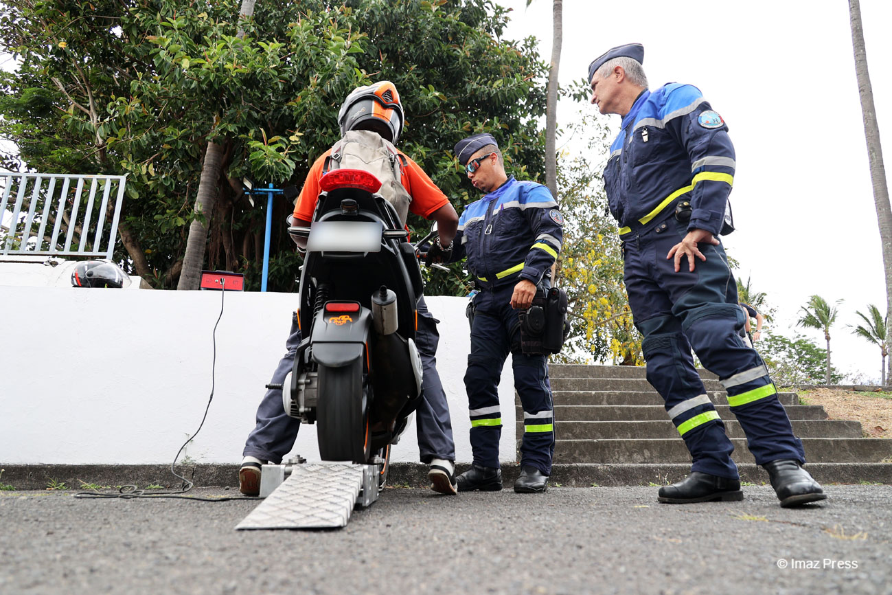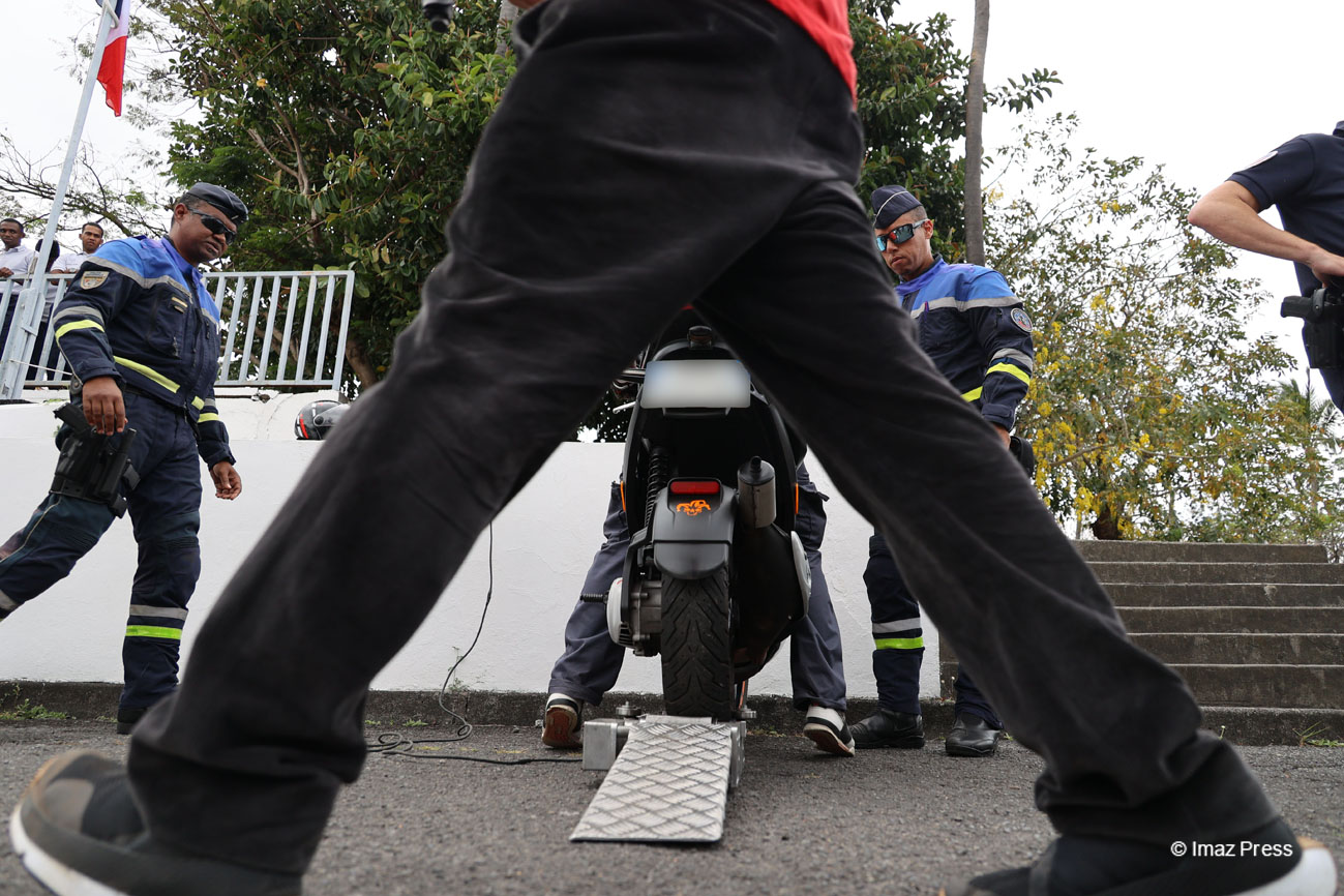 En moins d'une heure, six scootéristes se sont vus verbaliser pour avoir débridé leur deux-roues, l'un d'entre eux montant même à 99 km/h, contre les 45 autorisés. "Les scooters sont majoritairement et massivement débridés à La Réunion" a souligné le commissaire Olivier Martinez, chef du service territorial de sécurité publique. "Il y a trois tranches de réponse : une première jusqu'à 60 km/h avec un rappel à la loi, une seconde entre 60 et 80 km/h avec une verbalisation à hauteur de 90 euros, et au-delà de 80 kh/h nous avons sept verbalisations à laquelle s'ajoute la mise en fourrière" détaille-t-il. Écoutez :