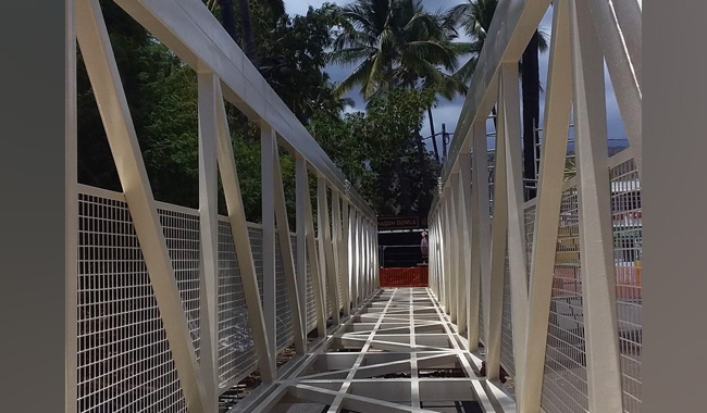 Dans le cadre des travaux préparatoires pour le remplacement des ponts des ravines Saint-Gilles et Carosse, un cheminement piéton est en cours de réalisation. À partir de 8 heures, le lundi 21 novembre 2022, la passerelle provisoire qui franchira la ravine Saint-Gilles sera posée. Il s’agira d’un ouvrage long de 29 mères avec un poids total de 8 tonnes. (Photo : ville de Saint-Paul)