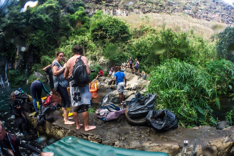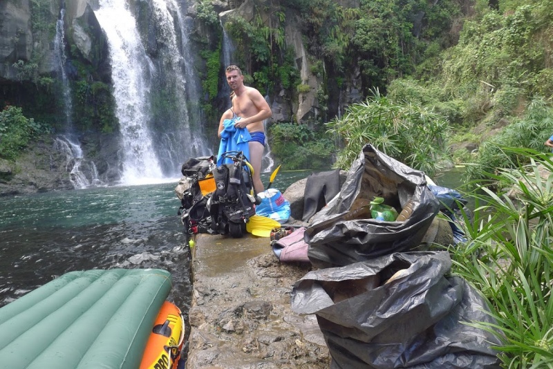 Pour la troisième fois ce mardi 28 mai 2019, l'association Scabe (sport culture art et bien-être à La Réunion) s'est rendue au bassin des Cormorans (Saint-Gilles) pour y mettre un coup de propre. Nettoyage des sentiers, du site et du fond du bassin, avec des plongeurs et apnéistes... Partie à 9 heures, la troupe de trente personnes a très vite remplie de nombreux sacs, le lieu était une nouvelle fois très sale. Insolite : une bouteille de lait datant de 1985 a été retrouvée... (Photos : Thierry Perès)