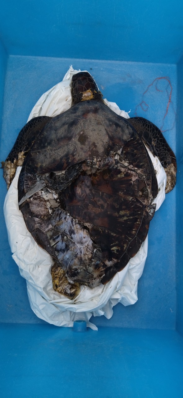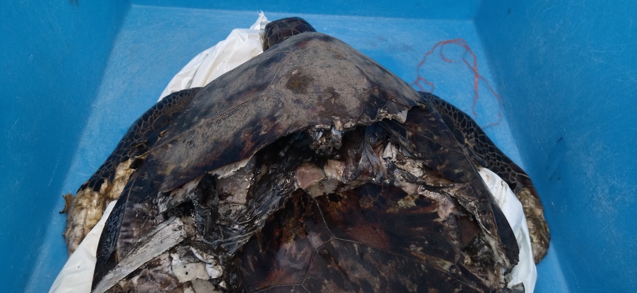 Ce dimanche 6 novembre, une tortue verte a été retrouvée morte dans le port de Saint-Gilles à Saint-Paul. Sa carapace était enfoncée. Comme l'indique Kelonia, l'animal marin a été percuté par un bateau. "L’importance de la blessure n’a laissé aucune chance à la tortue", indique le centre de soins des tortues. (Photos : Kelonia)